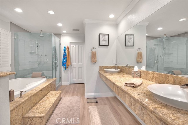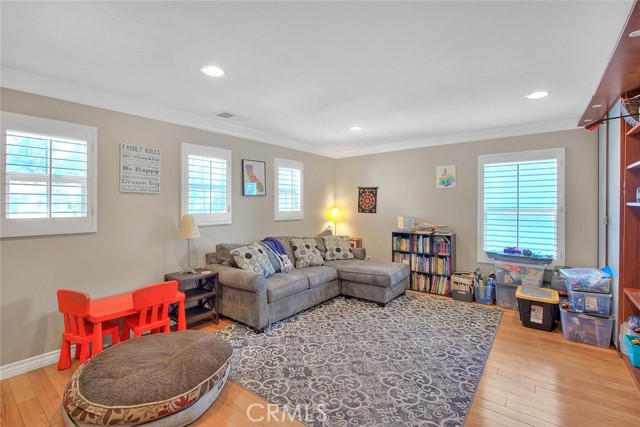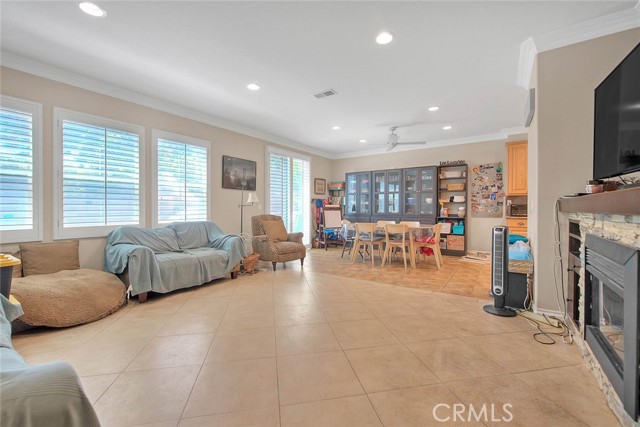 Welcome home to 1855 Ambrosia in one of Upland's highly desirable communities. The Colonies-with no Mello Roos & low HOA! This 2-story Kaufman & Broad home is located in a master-planned community which boasts 2912 square feet of living space, with an open floor plan, generous sized bedrooms and ample storage with 4 bedrooms, 2.5 bathrooms, and a flexible floor plan perfect for families or professionals seeking space and functionality. The downstairs floor plan consists of a half bathroom, a bedroom perfect for a home office or guests, a formal living room and dining room, kitchen, laundry room and an informal dining area. The kitchen has high end cabinetry, with stainless steel appliances, built-in-oven, microwave, and dishwasher with granite countertops. Located off the kitchen is a spacious family room with a fireplace to cozy-up on chilly winter nights. Upstairs, along the wooden staircase, there is a spacious loft with wood flooring and cabinetry - perfect for a child's play area, game-media room, or added living area. Additionally, there are two considerable sized bedrooms, and a full sized bathroom with granite countertops. Double-entry doors lead to the large primary bedroom with an en-suite and a large walk-in closet. There is tile, wood and carpeted flooring, plantation shutters, crown molding and recessed lighting throughout the home. The backyard has limited maintenance, with stone tiles, a wet bar and an above ground hot tub - a wonderful space to unwind at the end of a workday to host and entertain friends and family. This home is within walking distance to the Colonies Crossroads Shopping Center, offering dining, shopping, gym facility and more, with convenient access to the 210 Freeway, Upland Hills Golf Course and outdoor recreation with biking and jogging paths, scenic views, parks and access to distinguished school district. Enjoy the peace of mind of a quiet community with low HOA fees and no Mello Roos taxes, all nested in a well-established area known for its charm and accessibility. Don't miss this opportunity to own in one of Upland's premier neighborhoods. Schedule your private showing today!