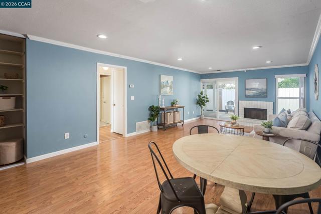 A RARE value find in Brentwood, this cute single-story duet property is 975sqft with 2 spacious bedrooms and 1 full bathroom plus NO HOA. The best perk is the unique almost 5,000sqft corner lot with plenty of privacy and space in both the front and backyard, plus the large attached 2 car garage with epoxy flooring. Walking inside, you're greeted by a large open living & dining combo space with great natural light and fireplace. Perfect for cozy nights and summer days! The kitchen is just the right size with tile countertops, recessed lighting, fridge included, and a window above the sink overlooking the front yard space. The two spacious bedrooms both include great large closets and fresh paint. The backyard includes a massive covered patio perfect for enjoying our wonderful year round weather plus large backyard area with fresh mulch and shed. Also note there is all new insulation in the attic space. Refrigerator, Washer, and dryer all included as well! This home has so much to offer for the price- come see it this weekend! Open Sat 12-3pm and Sun 1-4pm.