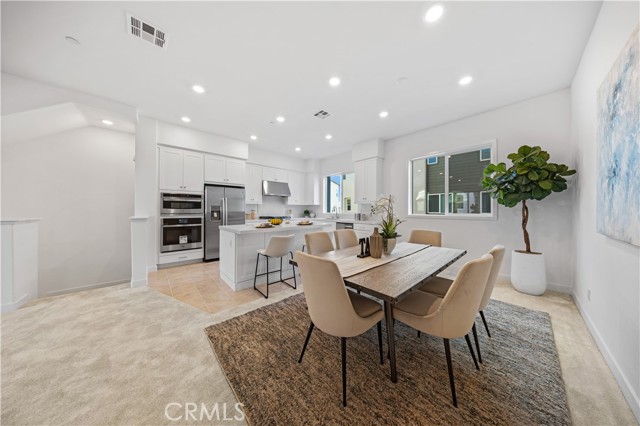 Price Reduced for Fast Sell, Great deal for VIEW Lot!! Welcome to this contemporary beautiful townhome is situated in a highly sought-after location renowned for its beautiful neighborhoods, exceptional schools, and convenient access to various amenities and entertainment options. It boasts a generous living space of 2,031 square feet, featuring three bedrooms with ensuite bathrooms, double balconies, a 2-car attached garage with direct access, and carpeted flooring in the bedrooms and tile flooring in the bathrooms. As you enter the home, you are welcomed by a private covered patio, and on the first floor, you'll find a quiet and cozy bedroom with a walk-in closet and bathroom. The second level offers luxurious carpet flooring throughout the bright and spacious living room, a large sliding door that leads to a covered balcony, a dining area, and a gourmet kitchen with modern appliances and easy-to-use cabinet drawers with sliding shelves. The master bedroom, third bedroom, and laundry area are conveniently located on the third level. This immaculate home is situated in The Great Park Solis Park, within walking distance to Portola High School, Solis Park K-8, community Pool/Club entertainment area, and kids' playgrounds, close to Hwy. 5, 133 and 241, short drive distance to Irvine Spectrum Center, South Coast Plaza, and Beach area, and John Wayne Airport, making it an absolute must-see property.