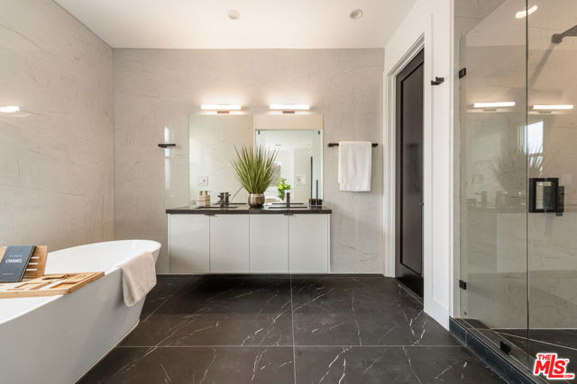 This newly constructed modern home features bright, open living spaces and premium finishes throughout. Featuring four bedrooms and five bathrooms, every bedroom is designed with comfort and convenience in mind, each complete with its own en-suite bathroom and custom walk-in closet. The main level welcomes you with a bright, open floor plan. Double doors lead into the living space, where a sleek glass staircase railing was chosen to enhance the open feel of the home. This level features both a living room and a family room, offering flexible spaces for relaxation and entertaining. You'll also find one bedroom with an en-suite bath and walk-in closet, a powder room for guests, and a spacious kitchen alongside the formal dining area. The kitchen is thoughtfully designed with both style and function in mind. An oversized two-tiered waterfall island becomes a natural gathering place, surrounded by high-end appliances from Miele, Bosch, Wolf, and Bertazzoni, custom cabinetry, a wine fridge, and a dedicated bar area. Upstairs, three additional bedrooms each feature their own en-suite bathrooms and custom walk-in closets. The primary bedroom is spacious, highlighted by a spa-like bathroom with a standalone tub, dual sinks, and a separate shower. Additional highlights include a two-car garage with epoxy flooring, abundant natural light throughout the home, and incredible privacy with only one neighbor and streetside privacy hedges. Ideally located in the heart of Glendale, this home provides easy access to downtown Glendale, Eagle Rock, Pasadena, and Silver Lake. Conveniently located near the freeway for easy access, the home's well-designed interiors remain peaceful and quiet. This is a rare opportunity to purchase at an exceptional value!