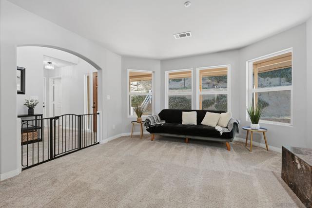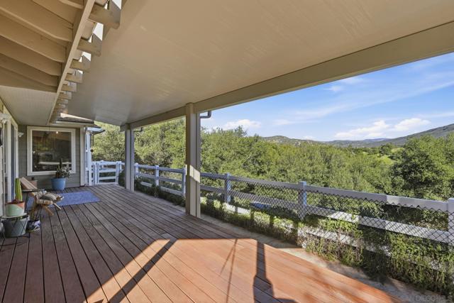 Perched on 2.82 acres in the scenic hills of Descanso, this beautifully maintained 3-bedroom plus loft, 3.5-bath home offers sweeping views, modern upgrades, and exceptional space to enjoy peaceful country living. Built in 2005, the 2,646 sq ft residence combines newer construction with thoughtful features designed for comfort and efficiency. Inside, soaring ceilings create a bright and inviting atmosphere, while the well-designed layout offers both openness and defined living areas. The kitchen features granite countertops, stainless steel appliances, and a brand-new stovetop, along with a reverse osmosis water filtration system at the sink. The primary suite is conveniently located on the main level, while upstairs offers a second primary suite, plus the loft area. Additional upgrades include a whole-house water softener and filtration system providing quality water throughout the home, owned ground-mount solar, dual-zone A/C, and a tankless water heater. Outdoor living shines with a wraparound deck where you can take in the beautiful mountain views and mature oak trees surrounding the property. The expansive lot has usable areas for potential development (possible ADU, workshop, garden, or animal facilities?). Fenced RV parking, and a carport off the garage provides extra covered parking to complete this exceptional property.