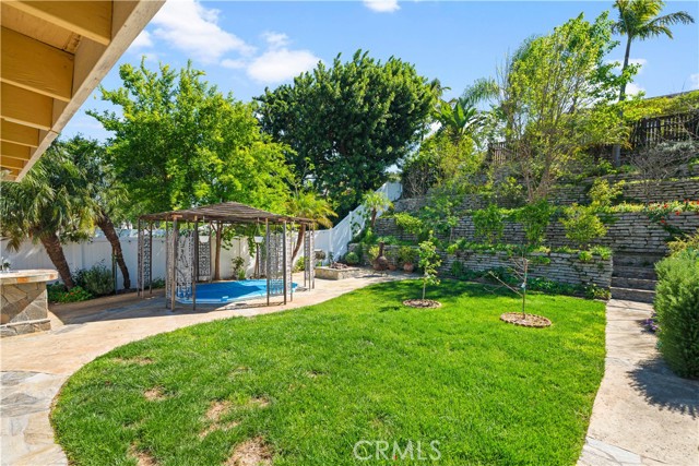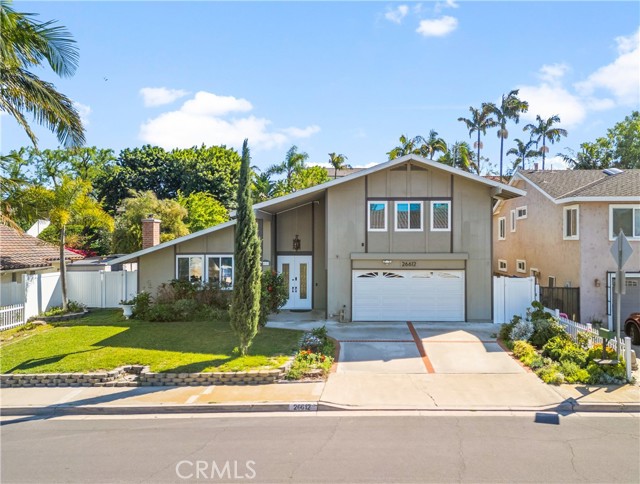 Welcome to this beautifully upgraded home at 26612 Estanciero Drive in desirable Mission Viejo. Offering approximately 1,950 sq ft with 3 bedrooms and 3 bathrooms, this residence sits on a large 8,700+ sq ft lot with exceptional privacy. The home features vaulted ceilings, upgraded flooring, and spacious living and family rooms—each with a fireplace. The kitchen includes solid wood cabinetry, black granite countertops, stainless appliances, and reverse osmosis water filtration. The renovated primary bathroom offers a large soaking tub and modern finishes, while smart-home features and energy upgrades include paid-off solar (40 panels), Mitsubishi multi-zone AC, tankless water heater, EV charger, and whole-house water filtration. The backyard is an entertainer’s dream with a custom BBQ island, gas fire pit, spa under pergola, stone retaining walls, and mature fruit trees throughout the organic garden. Located near top schools and offering access to Lake Mission Viejo amenities.