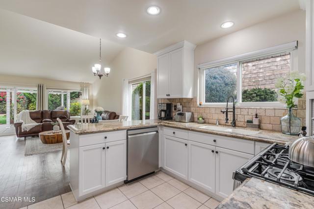 Lovely Single story view home in the ''North View'' neighborhood in Moorpark. This property sits up from the street offering stunning mountain views. Enter to find an inviting interior with fresh paint and high ceilings. Large living room with adjoining dining area and cozy family room with fireplace. Updated windows and doors throughout for energy efficiency. The open living areas flow seamlessly with porcelain tile flooring that extends through the living room, kitchen, and hallways. The kitchen offers white painted cabinets, granite counters and a variety of contemporary smart appliances including: a new Wi-Fi-enabled dishwasher, high-quality drinking water filter, smart Wi-Fi gas range and oven, full-size smart Wi-Fi microwave with hood fan, and a sleek refrigerator-freezer featuring InstaView(r). Down the hallways, find smart Wi-Fi power switches and dimmers in bedrooms and common areas. Full-house smart Wi-Fi lighting with automatic scheduling keeps everything perfectly illuminated, and a smart Wi-Fi deadbolt offers keyed, keypad, and palm-scanning entry for added convenience and peace of mind. Auxiliary whole-house generator wiring ensures reliability during any outage. The bedrooms offer comfort with warm laminated wood flooring and new closet sliding doors in every room. The primary bedroom has vaulted ceilings and views to the back garden. The primary bath has a new stone-top vanity, porcelain tile shower with frameless glass door, and new porcelain tile flooring. Laundry is a breeze with a top-load washer and gas dryer. Before heading outside, step into the 2 car garage with epoxy and metal-infused flooring that resists oil stains and tire marks while staying easy to clean. A whole-house sediment filter protects plumbing and heaters, and dual 240V charging ports (40A and 16A) support convenient Level II electric vehicle charging. A new metal fire door leads to the backyard, framed by new termite-proof molding. Hands-free motion-controlled lighting illuminates every area, with smart programmable lights at the entrance and backyard access. Practical additions include a new 21-cubic-foot standalone freezer, three storage cabinets, and a high-efficiency new furnace with variable-speed blower for quiet, effective heating. Outside, the front and backyard have been designed for beauty and low maintenance. Relax and entertain family and friends on your back patio. Smart Wi-Fi sprinkler system adjusts watering intelligently based on real-time weather data. A delightful variety of fruit trees: two each of red and yellow pomegranates, black and red mulberries, and bitter/sour oranges, Alder Meyer lemon, prickly pear, white-flesh nectarine, and Saturn-donut peach. The well-maintained roof, with regular inspections, fortified bars for enhanced tile support, replaced underlayment and reset tiles as needed, and new boards in any worn areas, promises lasting durability. This thoughtfully upgraded residence blends smart technology, premium finishes, and inviting outdoor spaces into an exceptional, move-in-ready home ready for its next owners.