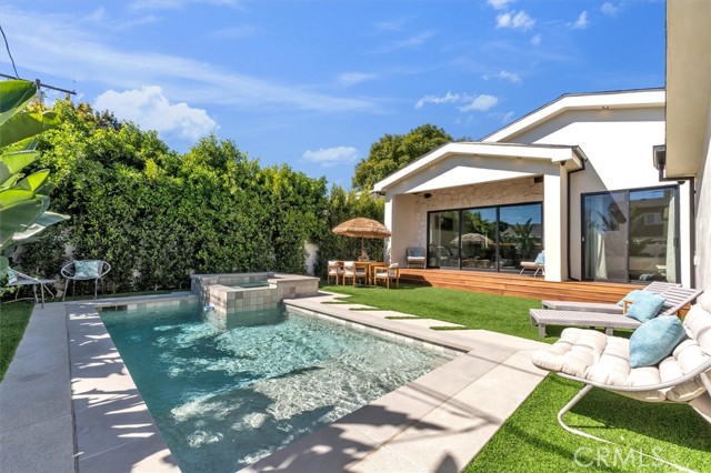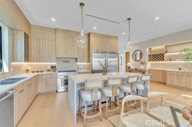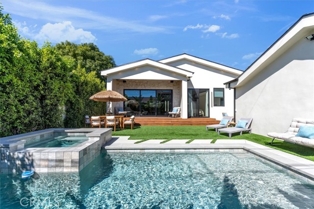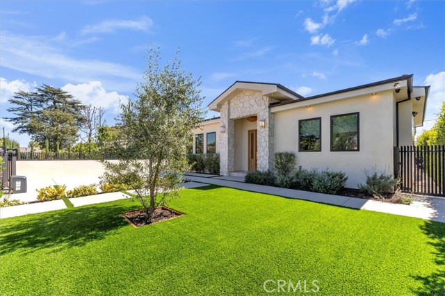 Set on a beautiful street in the heart of Valley Village, this newly built residence showcases striking architecture, thoughtful design, and exceptional attention to detail. Spanning five bedrooms and five and a half bathrooms, the home blends refined finishes with a layout designed for modern living and effortless entertaining. Inside, soaring 10-foot ceilings and a seamless open-concept floor plan create a sense of scale and flow throughout the main living spaces. The chef’s kitchen serves as a true centerpiece, appointed with top-of-the-line Thermador appliances, sleek cabinetry, and generous workspace for both everyday living and hosting. Just off the kitchen, a sophisticated bar complete with sink and beverage refrigerator adds a stylish element for entertaining. Modern convenience meets elevated living with a full camera security system, integrated indoor and patio speakers, and a fully gated perimeter providing privacy and peace of mind. Additional highlights include a spacious laundry room and a beautifully designed deck patio that extends the living space outdoors, creating an inviting setting for gatherings or quiet evenings under the California sky. The backyard is designed for both relaxation and entertaining, featuring a resort-style pool and spa surrounded by lush, thoughtfully curated landscaping that enhances the property’s natural beauty. The home’s smooth stucco exterior paired with stone accents adds a refined contemporary presence and striking curb appeal. Adding even more versatility, the property includes a private 1-bedroom, 1-bathroom ADU complete with its own full kitchen and washer/dryer, offering excellent flexibility for guests, extended family, or potential rental income. A rare offering that combines elevated design, modern amenities, and exceptional versatility, all set within one of the Valley’s most desirable neighborhoods.