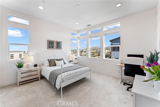Premium corner-unit home in Irvine’s highly sought-after Solis Park neighborhood of Great Park featuring 4 bedrooms + loft and 3.5 bathrooms. This thoughtfully designed floor plan offers flexibility for multi-generational living, guests, or a dedicated work-from-home space, while the corner location provides added privacy, abundant natural light, and open neighborhood views. The stylish kitchen features white shaker cabinetry, stainless steel appliances, and a large walk-in pantry, opening to bright living spaces ideal for both everyday living and entertaining. Enjoy modern efficiency and convenience with paid-off solar and Smart Home upgrades including a Ring doorbell, smart door locks, whole-house fan, tankless water heater, and EV charging pre-wire. Located within the award-winning Irvine Unified School District, the home is walking distance to Solis Park K–8 and Portola High School. Residents also enjoy access to Great Park’s exceptional resort-style amenities, including pools, parks, playgrounds, sports courts, and scenic walking and biking trails. Rare opportunity to own a premium corner home in one of Irvine’s most desirable master-planned communities.