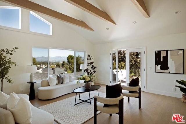 Set high in the hills of Sherman Oaks, this fully renovated home feels private, quiet, and intentionally removed from the street below.The house keeps its mid-century bones while leaning clean and modern throughout. The main living spaces including the living room, dining area, and kitchen are open and airy, with vaulted ceilings, exposed beams, and a natural flow that works for everyday living.On the main level, alongside the kitchen and living room, there's a separate bedroom with its own en-suite bathroom, ideal as a guest suite or home office. Downstairs, two additional bedrooms share an updated bath, creating a comfortable and functional layout.The kitchen has been completely redone with rifted white oak custom cabinetry, black stainless appliances, and a warm, modern feel that's clean, current, and great for hosting. Laundry is conveniently located on both the primary level and the lower level, adding flexibility to the home's layout.Upstairs, the primary suite sits on its own level, paired with a den and balcony that look out over canyon and valley views. The primary bathroom has been fully renovated and includes dual sinks, a soaking tub, and a calm, spa-like feel.Outside, the pool has been fully redone and anchors a private backyard that's calm, usable, and easy to enjoy. A quiet hillside setting with real views, thoughtful renovations, and a layout that truly makes sense.