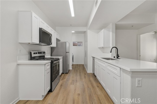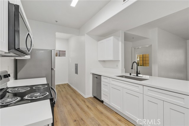 VA & FHA APPROVED! Welcome to this brilliantly updated lower-level end-unit condo that offers the perfect blend of comfort, convenience, and true turnkey living. Fresh paint, new flooring, and brand-new cabinetry create a bright, modern atmosphere throughout. The kitchen shines with new stainless - steel appliances—including oven, dishwasher, microwave, and fridge - plus quartz countertops. An in-unit laundry room with washer adds everyday ease so you can move right in with confidence. Enjoy two generously sized bedrooms, each featuring a large walk-in closet, along with two full bathrooms that provide comfort and privacy. The open concept layout enhances the home’s inviting flow, ideal for both daily living and entertaining. Parking is effortless with your own dedicated carport and a private One Car Garage—perfect for two personal vehicles. The location is unbeatable: the first building on the right as you enter the community, and unit 2412 is in the back of the building, plus just minutes from freeway access and a short drive to the vibrant shopping, dining, and entertainment and Wine Country of Murrieta and Temecula. The Villas at Madison Park is a gated community offering exceptional amenities, including a clubhouse, sparkling pool, spa, sauna, fully equipped gym, racquetball court, parks, assigned covered parking, and ample guest parking. The HOA is low and covers, water and sewer! We welcome your consideration of ownership, to own this newly renovated condo, with low taxes, in a highly desirable gated neighborhood, and remember… your home happiness is just a call away!