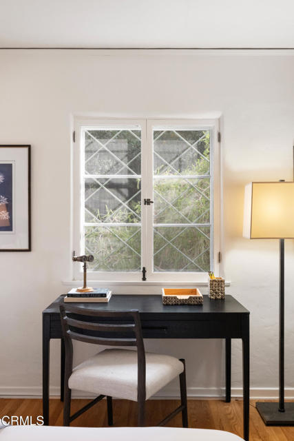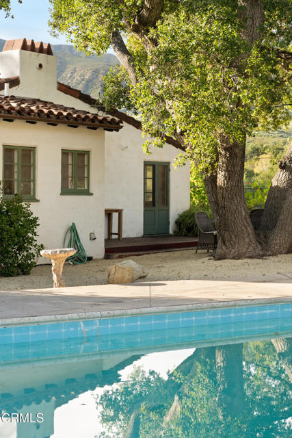 Perfectly befitting this authentic 1920s Spanish beauty, rich with soul and story, this timeless residence rests quietly in Ojai's coveted East End, an enclave where heritage oaks stretch toward mountain views and the air carries the sweet perfume of orange blossoms. Set on 1.6 acres of natural splendor, the property captures the very essence of the Ojai Valley~ serene, sun-washed, and deeply rooted in history.Hand-stacked rock walls embrace the grounds, guiding you through a landscape where mountain vistas unfold beyond a sparkling pool, a family orchard and an oh-so-sweet rose garden that leads you to a detached two-car garage and a beautifully restored two-bedroom guest house. The guest home has been thoughtfully curated in soft neutral tones and layered textures- elegant yet welcoming, refined yet relaxed with deVol and Waterworks fixtures, Fisher & Paykel appliances, custom cabinetry, and custom zinc counters- ideal for guests, extended family, or a private creative retreat.The main residence is a love letter to its era. Warm wood floors, original fixtures, classic casement windows, grand distressed wood beams and abundant built-ins speak to the craftsmanship of a byegone era. Two covered verandas invite long afternoons and unforgettable evenings~ the perfect vantage point for Ojai's legendary Pink Moment. Inside, a striking stone wood-burning fireplace anchors the home, offering warmth, character, and a sense of enduring comfort.Additional significant improvements have been completed, blending preservation with peace of mind new roof with copper gutters, new insulation and hand stacked stone walls.Architectural plans are complete and significant progress has been made in achieving permitting for an expansive family compound. This presents a rare opportunity to thoughtfully expand this historic estate while honoring its architectural integrity.A true piece of Ojai history~ ready to be cherished, or restored and carried gracefully into its next chapter.