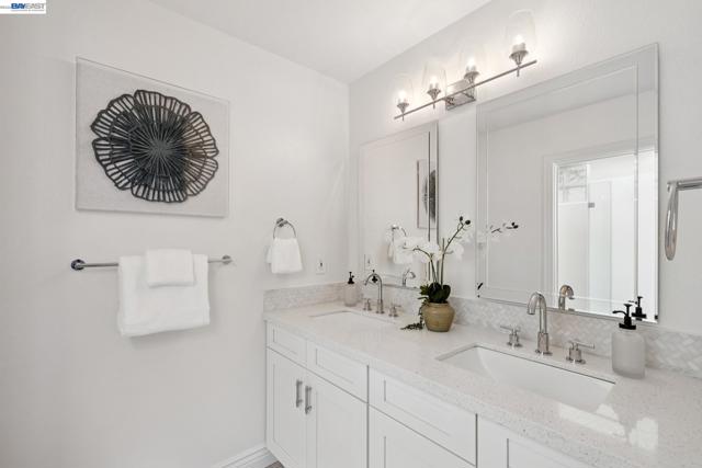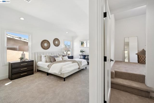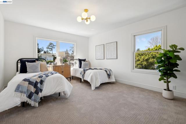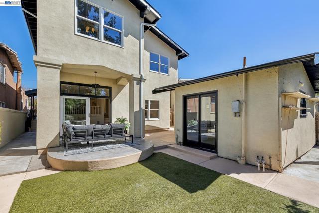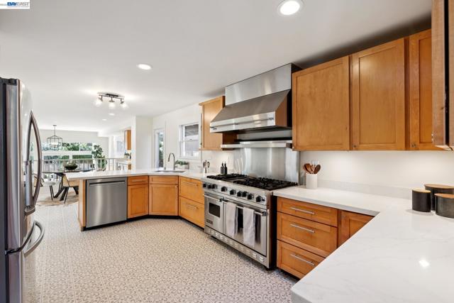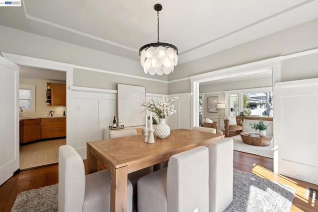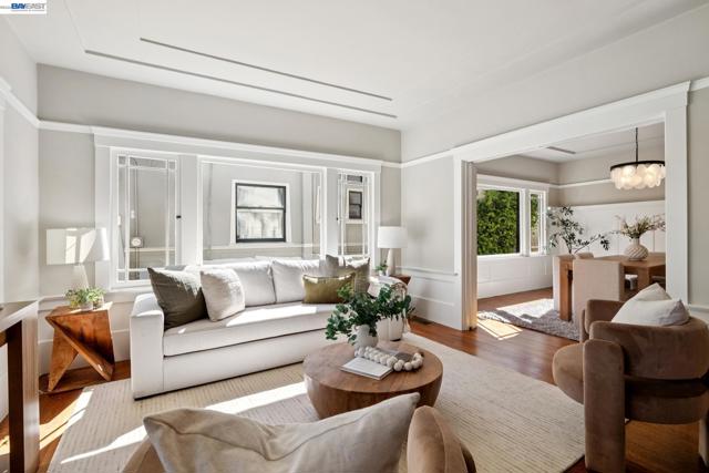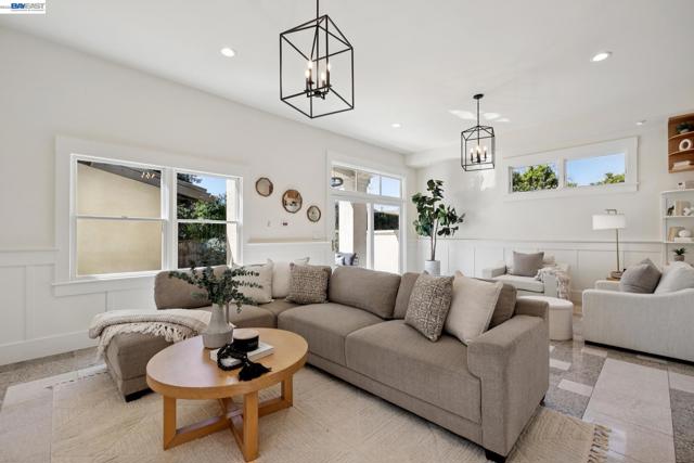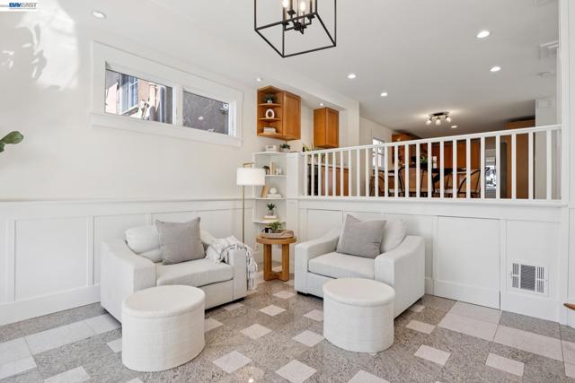 Located on a coveted block in Alameda’s East End, this classic Craftsman offers inviting curb appeal while its modest exterior gives little hint of the impressive scale inside. With over 2,750 square feet of living space, the home opens to a gracious formal living room with hardwood floors and a fireplace that flows seamlessly into a proper dining room. The beautifully updated eat-in chef’s kitchen features new flooring, quartz countertops, a built-in bar, and high-end stainless steel appliances including a Viking Professional range. It overlooks an expansive family room with high ceilings that opens directly to the backyard patio, creating effortless indoor-outdoor living. The home also features dual-zone heating and A/C for year-round comfort. Upstairs you’ll find a built-in office space, a convenient laundry closet, and three spacious bedrooms. The primary suite offers a serene retreat with a remodeled ensuite bath featuring double sinks, a large shower, and a generous walk-in closet. Two spacious additional bedrooms and an updated hall bath with a soaking tub complete the level. A long driveway with a Tesla charger provides ample off-street parking and leads to a detached garage offering additional flex space. Close to top-rated schools, parks, and commuter options to SF!