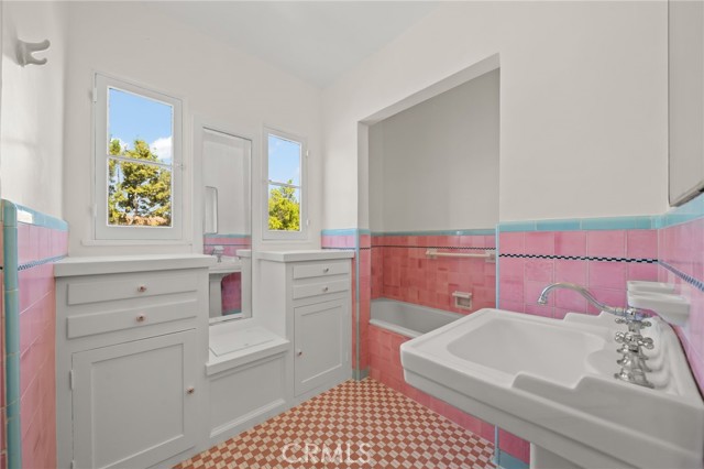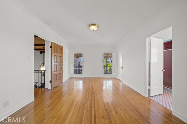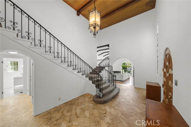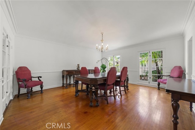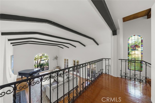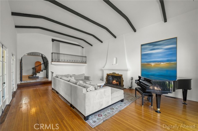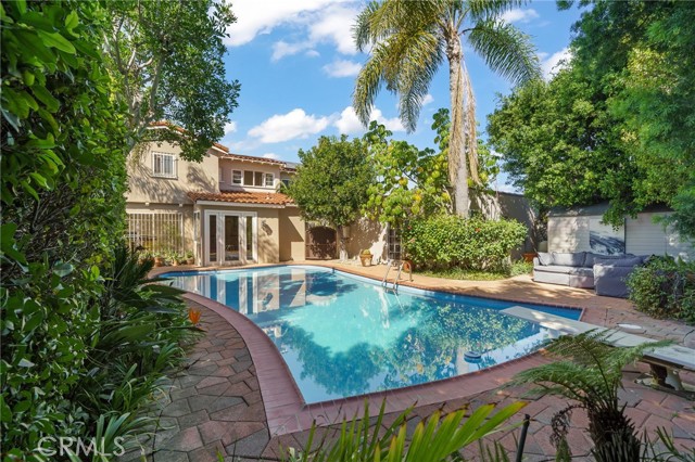 Come celebrate life in this timeless Spanish Revival pool home in historical Hancock Park. Only two owners in its lifetime, this two story home has 4 bedrooms and 2 bathrooms upstairs and a separate suite downstairs with bonus room overlooking the pool. Cathedral ceilings and a wrought iron staircase welcomes you into the grand living room with exposed beam, gas fireplace and unique Juliet balcony. A formal dining room is just off the kitchen and surrounded by the original 6ft glass windows lending view to the lush outdoor landscape surrounding this property. Original hardwood floors are found in many of the rooms of this home. There is an oversized side yard just off the main entrance perfect for eating al fresco. In the rear of the property you will find the pool and ADU complete with kitchen, bathroom and plenty of storage. Makes for the perfect pool house or guest quarters. Central heat & air, paid in full solar and newer roof. Move in ready and a perfect canvas for your custom updates and designs.