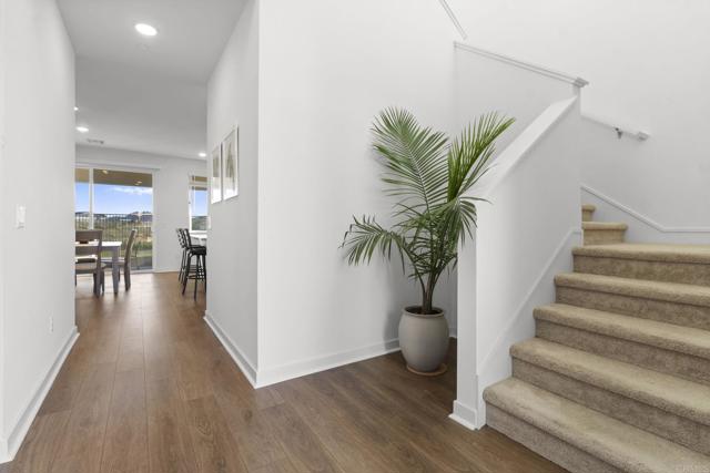 Thoughtfully positioned to capture sweeping mountain vistas and breathtaking sunset views, this nearly new 2024-built residence offers elevated countryside living in the desirable Citro Community of Fallbrook. This beautifully designed 4-bedroom, 3-bath home blends modern comfort, energy efficiency, and smart technology with serene rolling hill surroundings. The versatile floor plan is ideal for today’s lifestyle, featuring a full bedroom and bathroom on the main level—perfect for guests, multigenerational living, or a private home office. The main living area showcases a bright open-concept layout where the kitchen and living space flow seamlessly together, creating a welcoming environment for everyday living and entertaining. The upgraded kitchen stands out with granite countertops and backsplash, crisp white cabinetry, modern hardware, and a spacious walk-in pantry that provides exceptional storage. Numerous builder upgrades enhance the home throughout, including upgraded luxury vinyl plank flooring, tiled bathrooms, ceiling fans, and a tankless water heater. The home also features owned solar panels, central air conditioning, and Smart Home technology allowing you to conveniently control temperature and lighting from your phone. Upstairs, you’ll find the remaining bedrooms and bathrooms along with a full laundry room equipped with side-by-side full-size washer and dryer. Outdoor living is just as inviting, with peaceful countryside views from the expansive upstairs balcony and a covered patio below overlooking the landscaped yard with lush grassy space—perfect for relaxing, play, or entertaining. Residents of the Citro community enjoy resort-style amenities including a community center, pool, dog park, community garden, and approximately 14 miles of scenic hiking and biking trails. Nearby Willow Grove Park offers a convenient playground, while Mount Monserrate provides popular hiking trails with rocky terrain and panoramic summit views. Located within the highly regarded Bonsall Unified School District and just minutes from charming downtown Fallbrook, residents enjoy easy access to boutique shops, local wineries, equestrian facilities, and scenic outdoor recreation. Combining contemporary finishes, smart efficiency, and a prime view location in one of North County’s most sought-after newer communities, this move-in ready home delivers the perfect blend of comfort, style, and lifestyle.