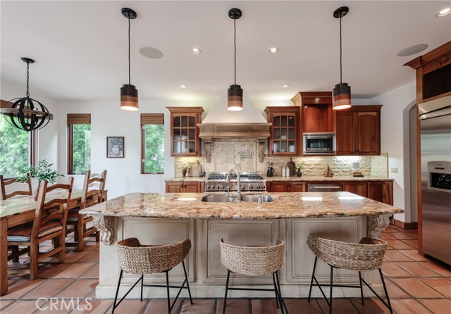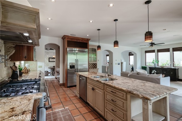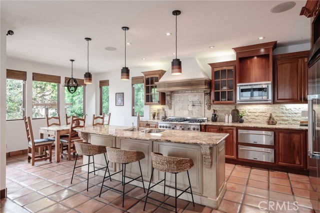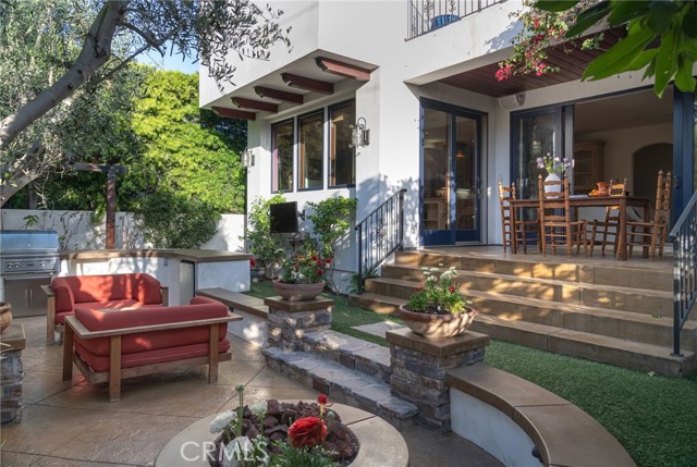 Custom built Spanish Mission Style Home in an A location, walking distance to the beach downtown and Grandview School. This home features over 3600 square feet including a full basement with media room, two wine fridges and a half bath. Sunny backyard. Freshly painted, newly refinished hardwood floors and custom tile. Step into soaring ceilings, transitioning into a cozy living room filled with light, beautiful walnut flooring and stone fireplace. Great room is perfect for family gatherings. Light and bright family room with French Doors leading to patio and backyard and open to a fully stocked Chef's kitchen with 6 burner Thermador stove, griddle, hood and double oven. Stainless steel fridge, dishwasher, warming drawers and double sinks. Breakfast bar plus kitchen nook provide multiple dining options. Formal dining room provides for more intimate gatherings. Beautiful low maintenance turf yard with fire pit and built in BBQ. Primary suite has sunny balcony, walk in closet, his and her sinks, jacuzzi tub and steam shower with rain head. 3 more bedrooms upstairs including one in suite room and one room currently being used as a home office Fully smart wired with Creston system controls and central air conditioning. Great family street where you can park your car for the weekend and walk or use your bikes to get to the beach or anywhere in Downtown Manhattan Beach.
