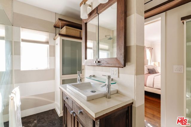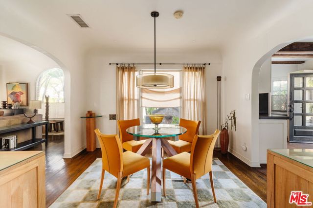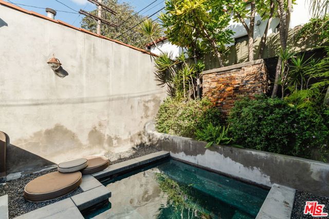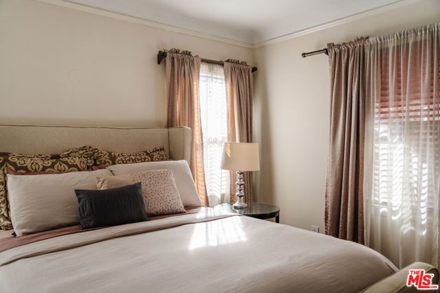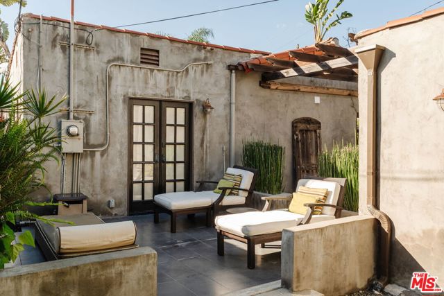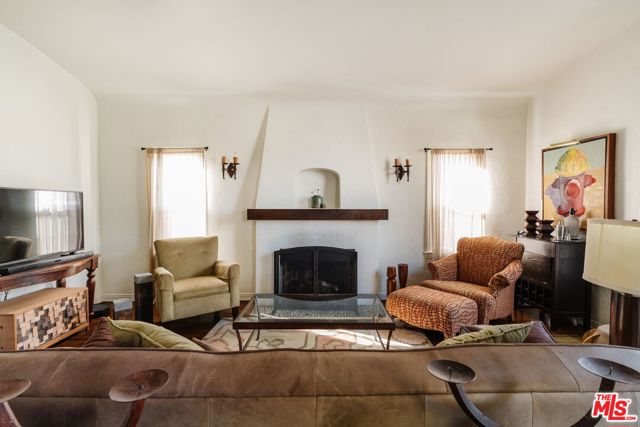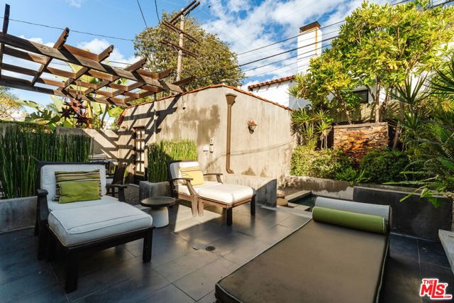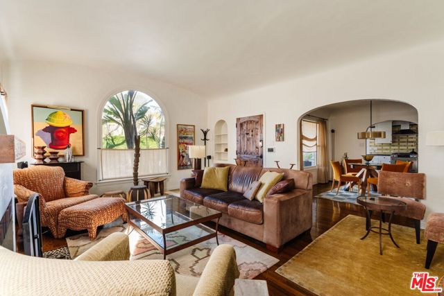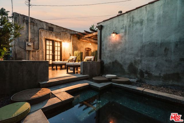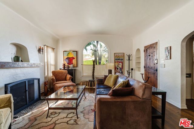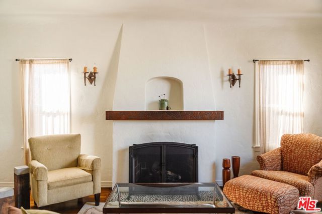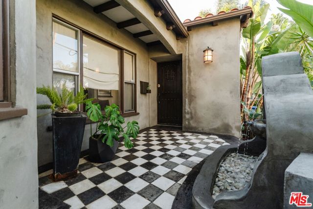 The love story will be yours from the moment you enter the gated courtyard beckoning you to stay! Prepare to be enchanted by this Incredible renovated 1930's Spanish Bungalow masterfully crafted and perfectly positioned in the heart of Faircrest Heights. Upon entering you're welcomed into the living room the heart of home with a large picture window, curved ceilings and fireplace which effortlessly transitions into the dining area, ideal for everyday living and entertaining, including pocket doors that allow it to be opened or closed off from the paneled hallway as desired. The updated kitchen feels fresh and functional with a wood-beamed ceiling, stained concrete counters, stainless steel appliances, built-in desk and patterned tile backsplash, a space where cooking feels effortless and enjoyable! Both bedrooms have their own bathrooms, which are amazing, one with the deep soaking tub, and the primary with heated floors and a curbless shower with three fixtures and rainfall. The primary bedroom has a custom walk-thru closet with ample built-in storage and shelving. The 2nd bedroom has French doors that open to the backyard. Get ready to enjoy warm nights beneath the stars, the backyard patio is an entertainer's haven with its tiled lounge area, fireplace plus an outdoor dining area and private in ground spa with waterfall. Providing a welcome respite from the hustle and bustle of city life to enjoy with family and friends. A detached garage currently with washer and dryer but offers endless possibilities as a home office, gym, studio, or future ADU. Nestled in the heart of the city and just blocks to cafes, shops and restaurants - this home is minutes from anywhere you wish to be. With its proximity to so much, you're bound to embrace this as your new home, where every day feels like a new adventure! A rare offering that blends character, privacy and creative lifestyle! Welcome Home!