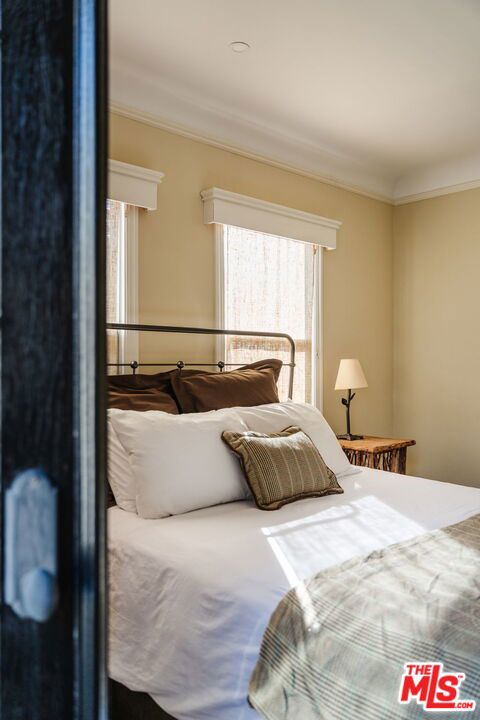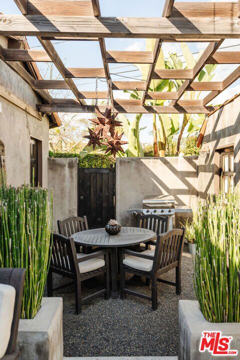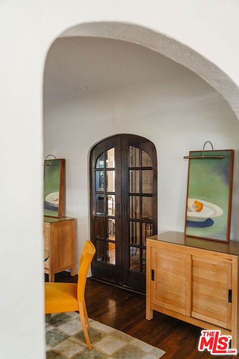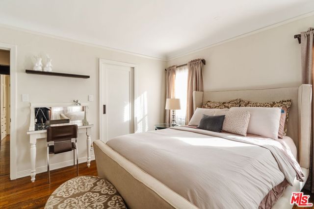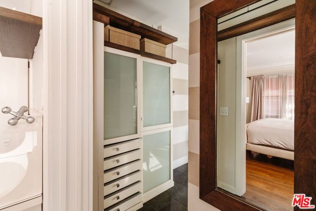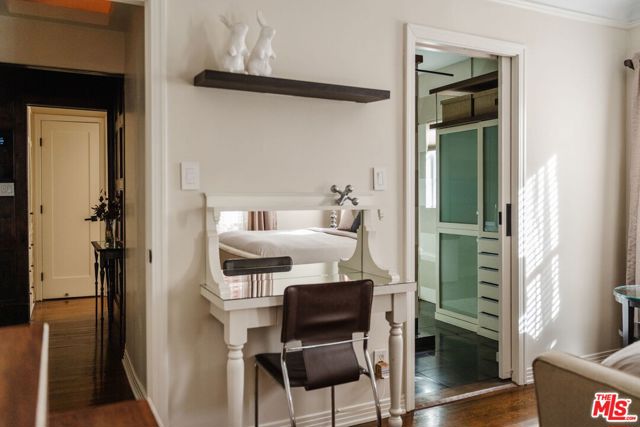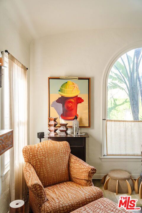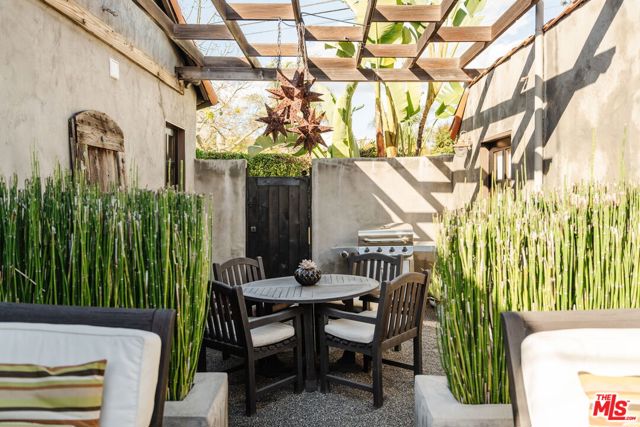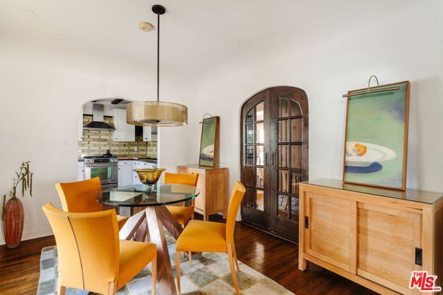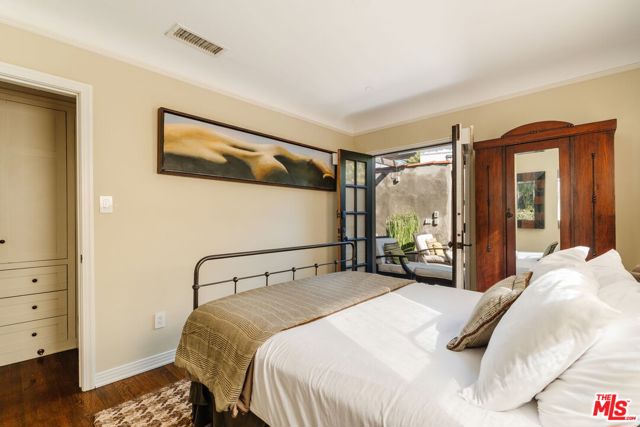 The love story will be yours from the moment you enter the gated courtyard beckoning you to stay! Prepare to be enchanted by this Incredible renovated 1930's Spanish Bungalow masterfully crafted and perfectly positioned in the heart of Faircrest Heights. Upon entering you're welcomed into the living room the heart of home with a large picture window, curved ceilings and fireplace which effortlessly transitions into the dining area, ideal for everyday living and entertaining, including pocket doors that allow it to be opened or closed off from the paneled hallway as desired. The updated kitchen feels fresh and functional with a wood-beamed ceiling, stained concrete counters, stainless steel appliances, built-in desk and patterned tile backsplash, a space where cooking feels effortless and enjoyable! Both bedrooms have their own bathrooms, which are amazing, one with the deep soaking tub, and the primary with heated floors and a curbless shower with three fixtures and rainfall. The primary bedroom has a custom walk-thru closet with ample built-in storage and shelving. The 2nd bedroom has French doors that open to the backyard. Get ready to enjoy warm nights beneath the stars, the backyard patio is an entertainer's haven with its tiled lounge area, fireplace plus an outdoor dining area and private in ground spa with waterfall. Providing a welcome respite from the hustle and bustle of city life to enjoy with family and friends. A detached garage currently with washer and dryer but offers endless possibilities as a home office, gym, studio, or future ADU. Nestled in the heart of the city and just blocks to cafes, shops and restaurants - this home is minutes from anywhere you wish to be. With its proximity to so much, you're bound to embrace this as your new home, where every day feels like a new adventure! A rare offering that blends character, privacy and creative lifestyle! Welcome Home!