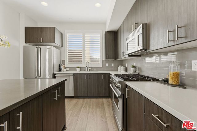 Exclusive Gated community townhome in Silverlake. 2016 built, 2 bed 2.5bath home at the Latitudes at Silverlake has a modern kitchen with Viking appliances and large prep / dining island. Bathrooms consist of modern updates. Open floor-plan Living space and bedrooms are surrounded with large windows with high ceilings to bring lots of natural light. Both bedrooms have en-suite baths and the primary bedroom has a walk-in closet and a private water closet. Separate powder room for guests at the main level. Ground level can serve as office / multi-purpose space. In unit laundry, central heat & air and 2 car private garage is EV charger ready. Community amenities include guest parking spaces, landscaped grounds and a sparkling pool with spa, outdoor showers and bathrooms. Desirable Ivanhoe Elementary School, Restaurants / nightlife, Trader Joe's, Whole Foods and Silverlake reservoir nearby. Don't miss opportunity to own this beautiful property in Silverlake and nearby Atwater Village.