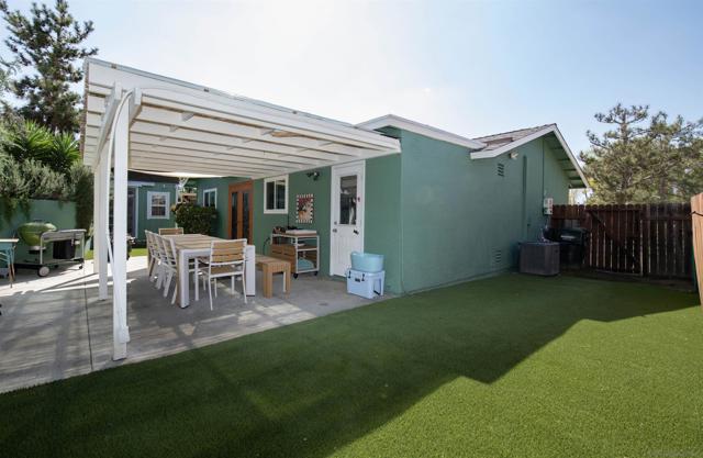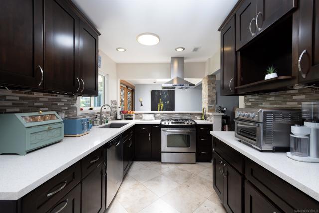 This San Marcos residence masterfully "brings the outside in," featuring a bright, open interior illuminated by a skylight and solar tube lighting. The heart of the home is a stylish kitchen equipped with a custom stone bar, quartz countertops, a colorful mosaic backsplash, soft-close cabinetry, a double pantry, and stainless steel appliances, all set upon elegant travertine tile floors. Seamlessly transition to the outdoors through wrought iron and glass double doors to a private backyard. This meticulously maintained property offers significant value with an updated bathroom, as well as new stucco, exterior paint, and energy-efficient windows all less than a year old.