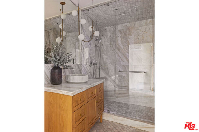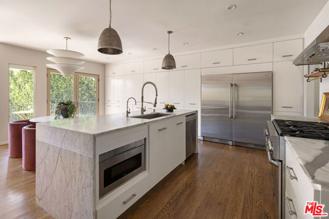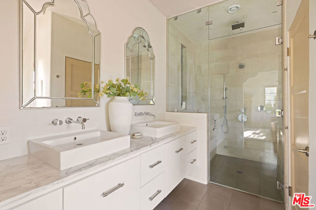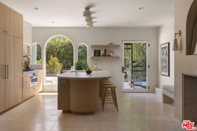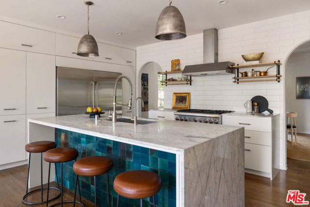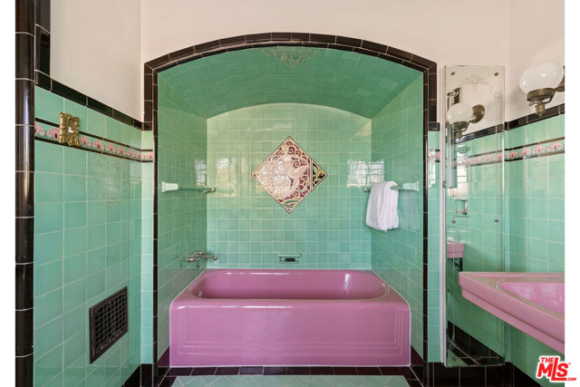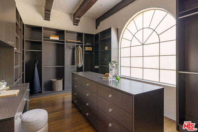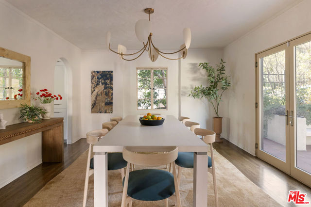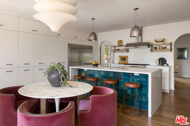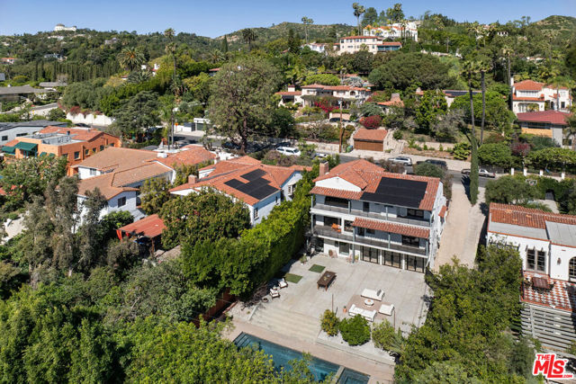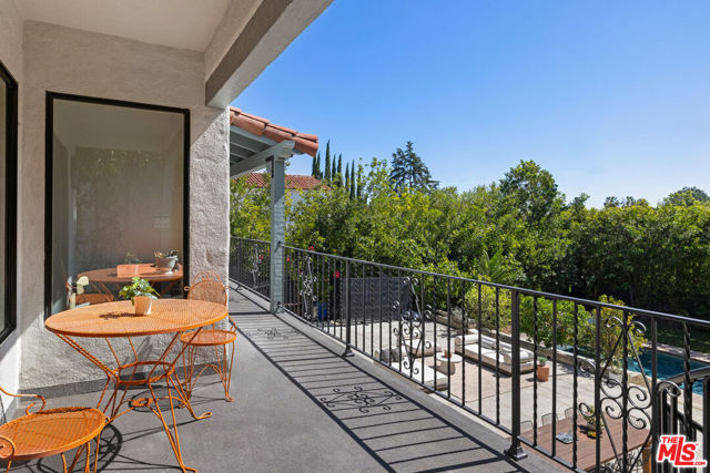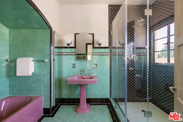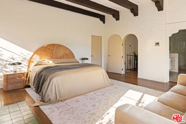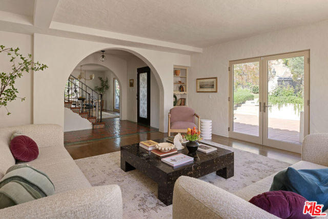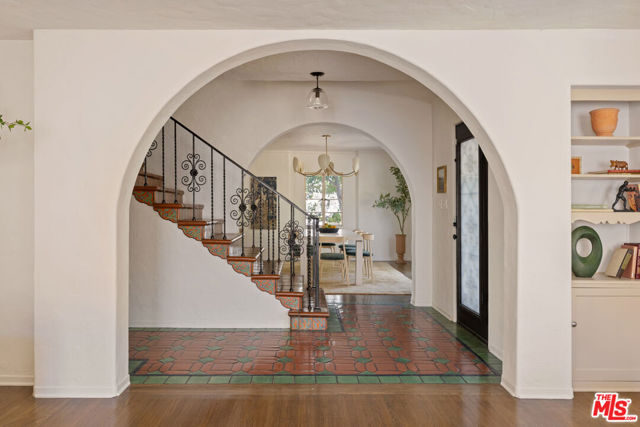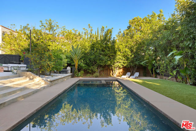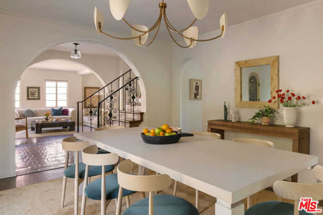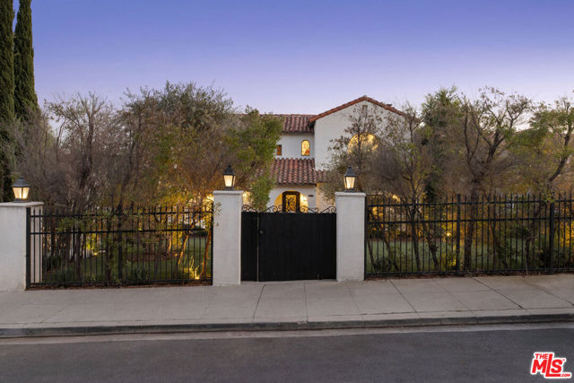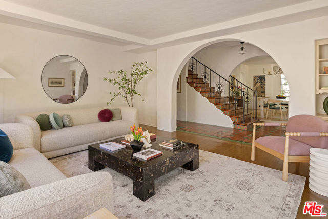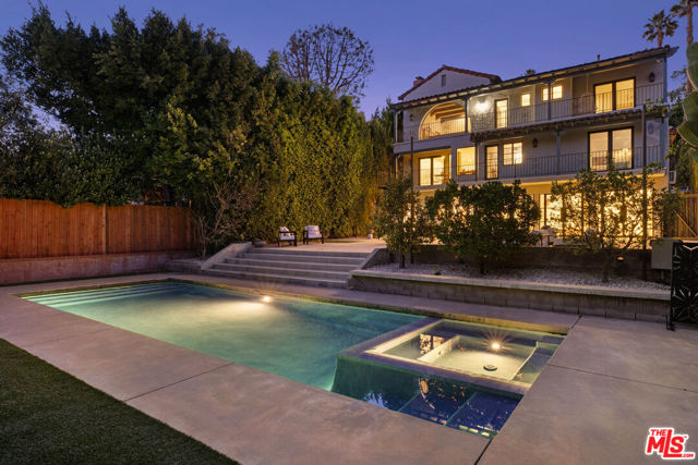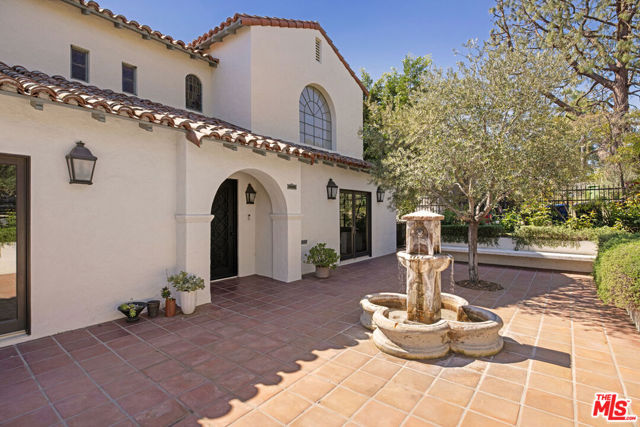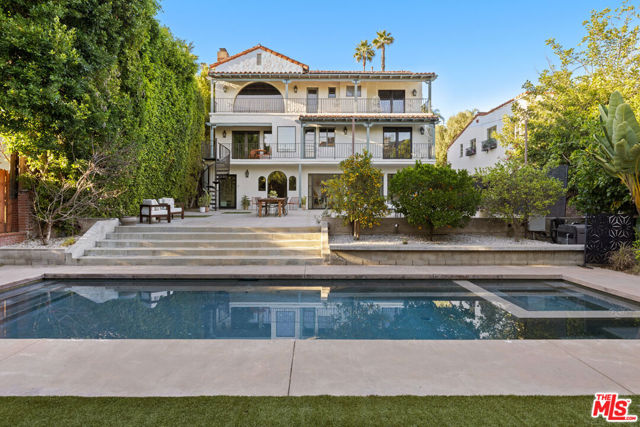 In prime Los Feliz north of the boulevard, this resplendent 1931 Spanish estate dazzles with beauty and grandeur, delivering endless space and a pool on expansive grounds. Sheltered from the street by a gate and a lush front yard, the stunning residence conjures up Old Hollywood elegance, balanced by elevated modern materials and bespoke finishes. Exquisite period details include arched doorways and windows, hardwood floors, and vintage tile work. The living spaces are capacious and filled with natural light, perfect for repose or socializing. The grand kitchen features a full wall of custom cabinetry and generous counters. Four bedrooms include a primary suite with a vast walk-in closet, and there are five gorgeous baths. The state-of-the-art junior ADU is a modern haven with its own entrance and bath, and there is additional bonus space to set up creative studio, home gym, screening room, or all of the above. The flat yard is your private paradise amid greenery and fruit trees, with a sparkling pool and areas to lounge, play, and dine alfresco. Amenities include central AC/heat and ample storage. You're moments from All Time, Little Dom's, Wilde's, Maru, Casa Leo, Griffith Park trails, and everything Los Feliz has to offer.