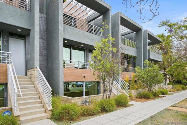 Modern luxury meets effortless indoor-outdoor living in this detached row home in the heart of Bankers Hill, just one block from Balboa Park. Offering nearly 600 sq ft of private outdoor living space, including a rooftop deck with views of the bay, this home captures refreshing ocean breezes through dramatic floor-to-ceiling doors that seamlessly connect the indoors and out. Inside, the home showcases 10-foot ceilings and newly constructed modern finishes throughout, creating a bright, open feel rarely found in the neighborhood. The designer kitchen features quartz countertops, porcelain tile, and high-end finishes, blending style and functionality for everyday living and entertaining. The primary suite is a true retreat, designed for indoor-outdoor living and complemented by a spa-inspired bathroom with a soaking tub and oversized walk-in shower. Throughout the home, the seller spared no expense with upgrades including automatic shades, energy-efficient windows and doors, smart locks, and a smart thermostat. Unlike many homes of similar size in Bankers Hill that come with sky-high HOA fees, this property offers the freedom of detached living with a low HOA, all while being outside the flight path. Additional conveniences include a 2-car garage plus plentiful non-metered street parking right out front. A rare opportunity to enjoy modern construction, private outdoor space, and one of San Diego’s most walkable neighborhoods.