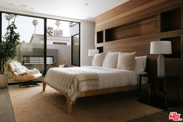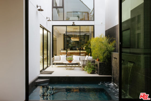 Meet the ever-enchanting Loren. Located at 838 California Avenue, this bold, light-filled architectural residence in the heart of Venice is an iconic expression of contemporary design and coastal sophistication. Celebrated across major design publications, Loren is one of the acclaimed Glass Ladies -- a trio of sculptural homes conceived by renowned designer Alon Zakoot and revered for their striking geometry and refined livability. Inside, a rare display of bold design and exceptional craftsmanship unfolds across a thoughtfully composed main level positioned around a central, open-air courtyard with a saltwater pool. A dramatic double-height foyer with a sculptural chandelier sets the tone, leading into the poolside living room anchored by an electrical fireplace. On the opposite side of the courtyard lounge is the designer-crafted kitchen, a culinary showpiece featuring European lacquer cabinetry, Calacatta stone countertops, premium appliances including a double-oven range, built-in espresso station, and temperature-controlled wine storage. The adjacent dining room, lined by floor-to-ceiling glass doors to the courtyard, invites gatherings both intimate and grand. Smart home tech, including home automation and integrated surround sound, enhances both everyday comfort and elevated entertaining. Ascend the floating staircase to discover a sun-soaked family room and the grand primary retreat. A sanctuary of relaxation, the primary suite boasts designer finishes, a private balcony with gas fireplace, generous closet space, and a spa-inspired bath complete with jetted soaking tub, glass-enclosed tile shower, and dual vanities. Additional secondary bedroom suites are each exquisitely appointed and include a junior primary suite with its own private, open-air patio. On the lower entertainment level, a spacious media lounge awaits with a built-in bar and ample space to relax or entertain. Crowning the residence is an expansive rooftop deck with sweeping 360-degree views of swaying palms, majestic mountains, and the sparkling cityscape. A built-in outdoor kitchen and firepit lounge create a destination for alfresco dining and relaxing in the California sunshine. Supremely positioned just moments from the beach and vibrant Abbot Kinney Boulevard, the home is surrounded by world-class dining, shopping, and laidback beach culture, representing Westside living at its most inspired.