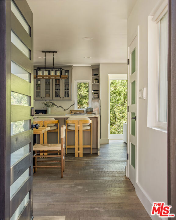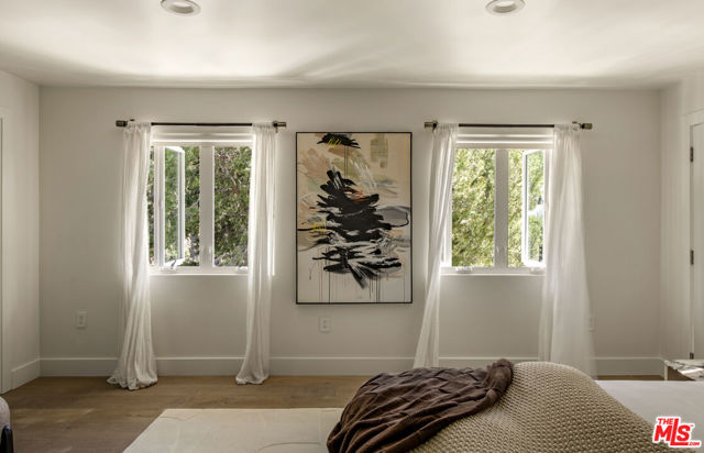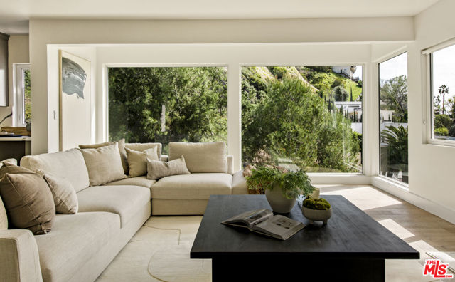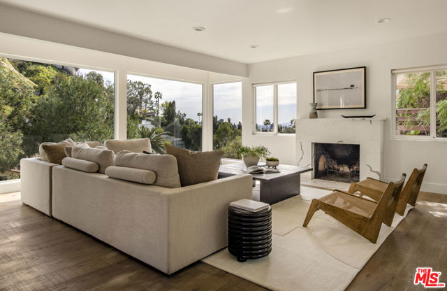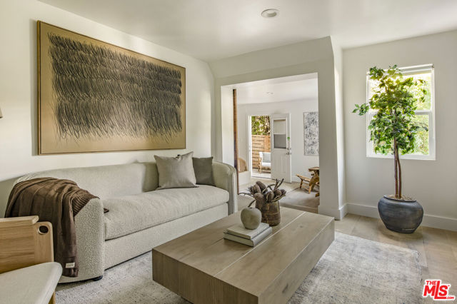 Perched in the lush section of the Hollywood Hills, this thoughtfully reimagined bungalow pairs timeless character with refined modern living. Expansive picture windows frame a tranquil, park-like canyon setting, filling the home with natural light and a quiet sense of privacy. Warm wood floors and a restrained contemporary palette create an atmosphere of sophistication. The thoughtfully designed kitchen features ample custom cabinetry, stone countertops, and premium stainless appliances. The primary suite serves as a peaceful retreat with a spa-inspired bath and serene private patio. The second bedroom also is equipped with its own living room/Den and a secluded outdoor patio, perfect for morning coffee and meditation. A versatile bonus room offers flexibility as a home office, creative studio, or potential third bedroom. The backyard terrace functions as a venue for entertaining guests or enjoying relaxed family barbecues beneath the trees. Just moments from the Hollywood Reservoir, The Hollywood Bowl, and incredible hiking and horseback riding trails, this residence delivers the rare balance of vibrant city access and the serenity of hillside living.