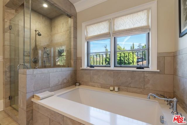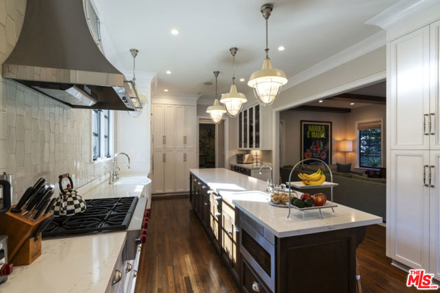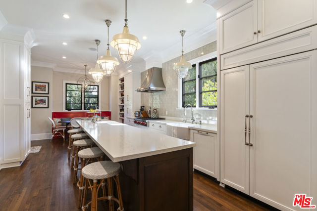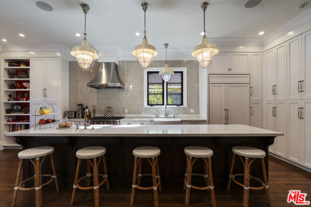 Custom built in 2017 by Lloyd Randall, this stunning Spanish-style residence designed by Chryssa Wolfe offers the perfect blend of modern amenities and timeless charm in the highly sought-after, family-friendly Brookside neighborhood. Gorgeous, thoughtfully designed, and completely move-in ready, this home truly has it all.The expansive main level is designed for both elegant entertaining and comfortable everyday living. A chef's kitchen anchors the home and flows seamlessly into the generous family room, while formal living and dining rooms, a library/office, soaring high ceilings, and gorgeous windows and doors create a light-filled and sophisticated atmosphere throughout. Upstairs features four spacious bedrooms and three bathrooms, including a beautiful primary suite with a private balcony- the perfect place to enjoy morning coffee or unwind at sunset. Step outside to an inviting outdoor dining patio complete with a built-in BBQ and fire pit, ideal for hosting gatherings year-round. The beautifully appointed yard features a sparkling pool and a detached guest house with a legal bathroom perfect for guests, a home office, or creative space. Just around the corner sits the beloved Memorial Branch Library, a treasured neighborhood hub offering family-friendly programming such as yoga and meditation, crochet and knitting groups, homework help for grades K-12, chess club, and more. Directly in front of the library you'll find the charming Memorial Branch Park, complete with a playground and open green space perfect for kids and community gatherings. All of this is just moments away from this truly special home. Ideally located with convenient access to Downtown Los Angeles, the University of Southern California, Beverly Hills, Cedars-Sinai Medical Center, and Century City, this central location makes commuting and enjoying the best of Los Angeles effortless. This is an incredible opportunity to own a beautiful, tasteful, and solidly built newer Spanish residence in the heart of Los Angeles. The main home measures approximately 3,500+ square feet, with an additional ~400-square-foot guest house (per seller).