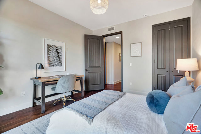 Introducing a truly exceptional southwest corner residence offering 1,721 square feet of living space within an intimate Tuscan-inspired building completed in 2005, with only four residences per floor and no shared walls. Bathed in natural light, this sophisticated two-bedroom, 2.5-bath home blends timeless elegance with modern comfort, featuring soaring ceilings, rich wood flooring, a formal entry, and an expansive open-concept design ideal for both entertaining and daily living. The beautifully appointed kitchen showcases polished granite countertops and premium stainless-steel appliances, flowing seamlessly into the impressive living and dining areas anchored by a statement marble fireplace. A generous front-facing balcony extends the living space outdoors, inviting gentle breezes and breathtaking sunset vistas. The grand primary suite offers a private retreat, complete with a spacious walk-in wardrobe and a spa-caliber bath featuring dual vanities, a deep soaking tub, and a separate glass-enclosed shower. The well-proportioned secondary bedroom enjoys its own full bath, offering flexibility for guests, family members, or a sophisticated home office. Additional features include in-residence laundry, secure gated parking, guest parking, private storage, and remarkably low HOA duesan uncommon value for a residence of this caliber. Ideally situated on the coveted Westside, the property is moments from the world-class shopping, dining, and cultural destinations of Beverly Hills, Century City, Westwood Village, and the prestigious University of California, Los Angeles. The property is also within walking distance of several synagogues and churches. For exceptionally qualified buyers, an opportunity exists to assume the current mortgage at 2.5% fixed October 2030 - creating a remarkable opportunity in today's market.