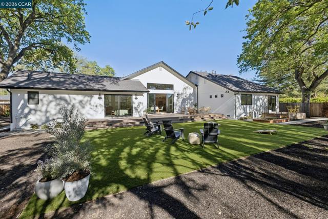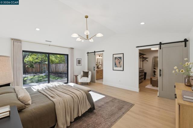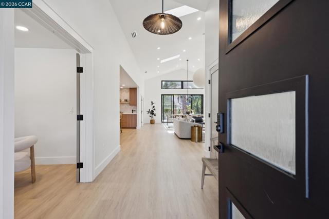 Skylit Architectural Retreat in Walnut Creek — Rebuilt in 2025 on a Flat 0.4-Acre Lot with Single-Story Living and ADU. The 4-bedroom + office, 2.5-bathroom main home is complemented by a 1-bedroom, 1-bathroom private attached ADU with a kitchen and laundry. Ideal for guests, extended family, office space, or rental income. Soaring vaulted ceilings, skylights, and natural light highlight the home’s modern design. Open living spaces center around a dramatic floor-to-ceiling fireplace and expansive Andersen sliding glass doors for seamless indoor-outdoor living. Wide-plank engineered wood floors run throughout, and the chef’s kitchen features sleek quartz countertops and a refined minimalist aesthetic. The primary suite includes a freestanding soaking tub and dual vanity. Additional highlights include an attached two-car garage and a puppy shower. The tree-canopied outdoor area is perfect for dining, entertaining, and relaxation, with potential for another ADU or a possible lot split. Minutes to BART, downtown Walnut Creek, Lafayette, and Pleasant Hill, with easy freeway access. Close to award-winning schools and nationally recognized De La Salle and Carondelet, plus nearby trails, restaurants, shopping, and parks. A rare offering set on one of the most desirable expansive grounds.