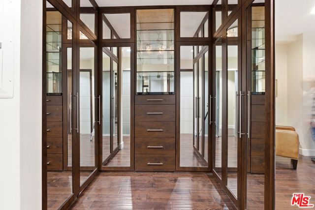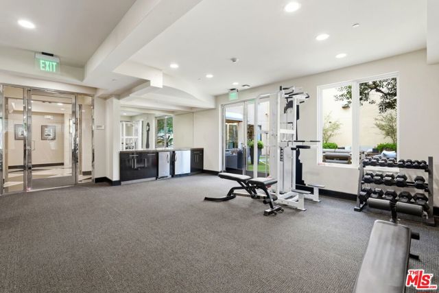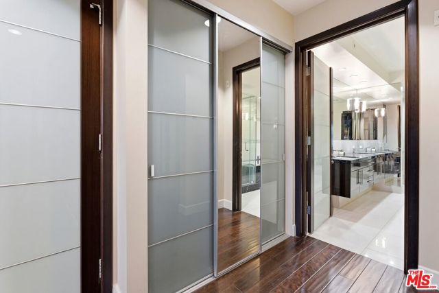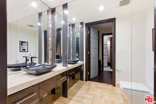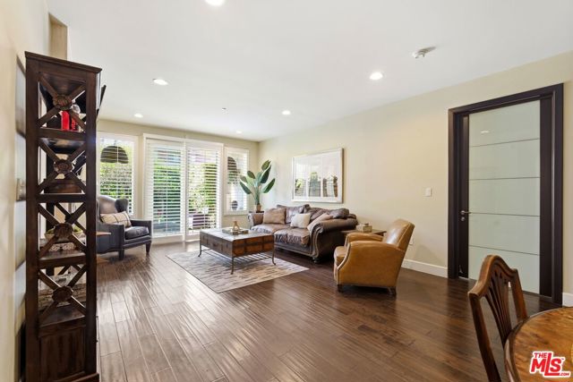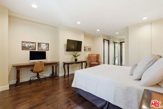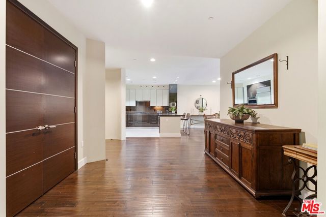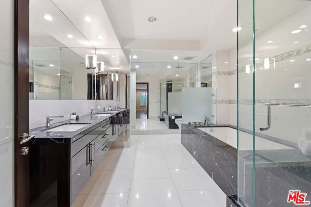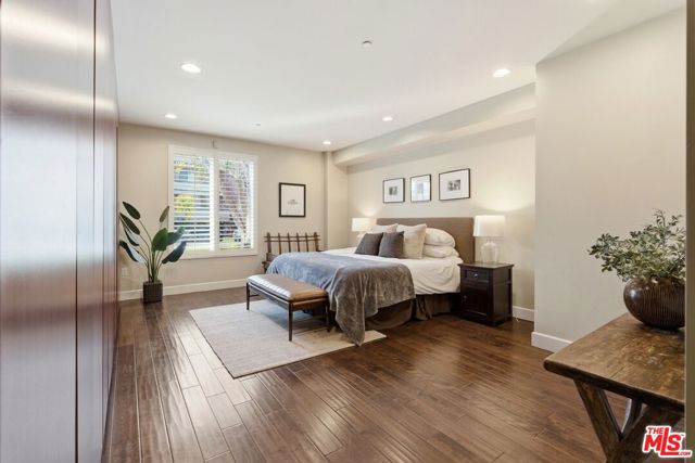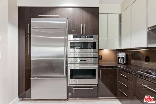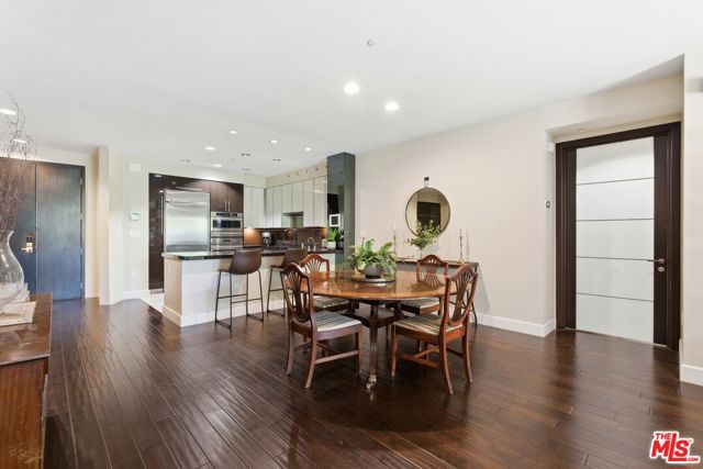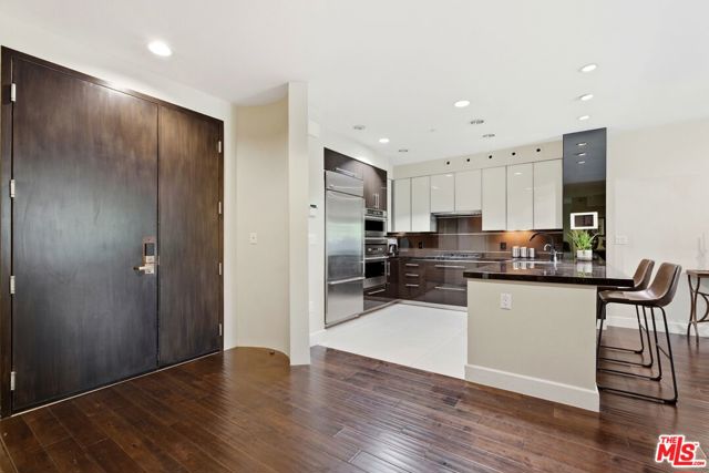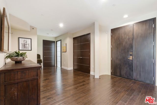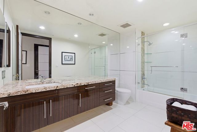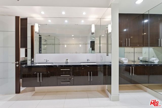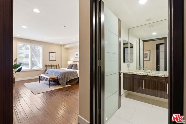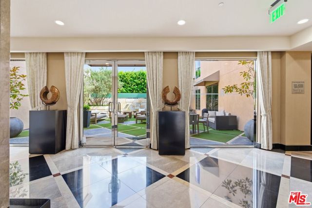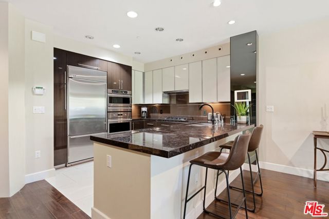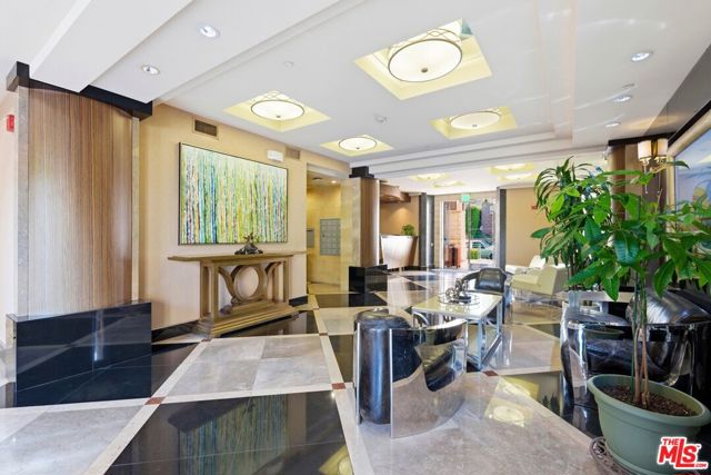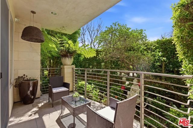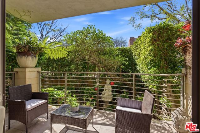 Welcome to your modern 2BR/2.5BA condo located in the Art Deco-inspired Roxbury Place building just steps from Beverly Hills. This spacious 1,991 sq. ft. west-facing first-floor residence features excellent natural light, nine-foot ceilings, and designer finishes throughout. Interior features include dark hardwood floors, recessed lighting, and an open-concept living and dining area that leads to a private tree-lined balcony. The kitchen offers granite countertops, bar seating, and ample cabinet space. The two primary bedroom suites are situated on opposite sides of the living area for privacy, and each includes a spacious en-suite bathroom with dual vanities. The larger primary bathroom features a soaking tub and separate shower. Additional features include a gallery-inspired entry hall, powder room, large storage closet, and in-unit laundry. Building's luxury amenities include concierge service, fitness center, and outdoor lounge area. HOA dues include earthquake insurance. Conveniently located approximately one mile from Roxbury Park and just minutes from the shopping, dining, and entertainment along Rodeo Drive, South Beverly Drive, and the business district of Century City.