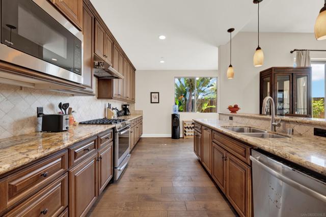 Experience elevated coastal living with sweeping Agua Hediondo Lagoon views, a flexible dual-primary floor plan (one bedroom + office down, and 3 bedrooms up... two of which are ensuites), quiet cul-de-sac location, and light-filled living spaces create the perfect Carlsbad retreat. Thoughtfully crafted for both comfort and flexibility, the home features two primary retreats, one upstairs and one downstairs, each with a spa-inspired bathroom. The downstairs primary suite offers convenience and privacy, ideal for guests or multi-generational living, and complete with spacious walk in closets. The chef's kitchen features well-cared for soft-close cabinetry complete with granite countertops, additional bar top seating, and quaint breakfast nook. The main living area unfolds into a spacious open-concept design, where natural light fills the home and creates an effortless flow between the living, dining, and kitchen spaces. A dedicated downstairs office provides the perfect work-from-home environment while maintaining separation from the main living areas. Upstairs, two additional bedrooms offer comfortable accommodations. One includes a private ensuite bathroom, while the other is served by a hallway bath, creating an ideal setup for family or visiting guests. Upstairs laundry offers additional convenience. One of the home’s standout features is its sweeping views of Agua Hediondo Lagoon, visible from the front bedroom and the front of the home. A private viewing deck invites you to unwind, enjoy ocean breezes, and take in Carlsbad’s signature coastal sunsets. Complete with a 4-car tandem parking garage, low maintenance turf backyard that is professionally landscaped with landscape lighting and private sitting areas, this home does not disappoint. Located by Carlsbad State Beach, Downtown Carlsbad Village, 5 minutes to boat ramp access, and convenient freeway access, this home blends coastal luxury with everyday ease, offering the best of North County living right at your doorstep.
