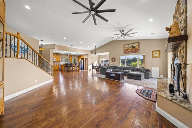 Privately positioned behind its own gated entry in the coveted Las Luces Del Cielo area of Poway, this 5.59-acre estate compound offers rare privacy, usable land, and exceptional multi-structure flexibility. Built in 2008, the 3,340-square-foot main residence features an open-concept layout with hardwood and travertine flooring, generously sized bedroom suites, and seamless indoor-outdoor flow framed by sweeping hillside views. Designed for entertaining at scale, the backyard includes a saltwater pool and spa, detached pool room with bath, and a custom cabana deck with built-in bar, BBQ, sink, refrigerator, clear-ice maker, and covered lounge space. The cabana is pre-plumbed for gas heaters, and the pool area also features an outdoor shower. A permitted 2-bedroom, 2-bath guest residence (1,089 sq ft), built in 2013, sits separate from the main home, ideal for multigenerational living, extended guests, or a private office. A detached garage structure (780 sq ft, built in 2013) has been fully finished as a 1-bedroom, 1-bath living space with kitchen, providing additional flexibility while remaining permitted as a garage. The acreage offers exceptional utility with permitted covered RV parking, workshop, outbuildings, and ample space for recreation, storage, or future expansion. Conduit has been installed for a future ground-mount solar system. No HOA. No Mello-Roos. Located within the Poway Unified School District. Properties in Las Luces Del Cielo offering this combination of acreage, privacy, and multi-structure versatility rarely become available. Privately positioned behind its own gated entry in the coveted Las Luces Del Cielo area of Poway, this 5.59-acre estate compound offers rare privacy, usable land, and exceptional multi-structure flexibility. Built in 2008, the 3,340-square-foot main residence features an open-concept layout with hardwood and travertine flooring, generously sized bedroom suites, and seamless indoor-outdoor flow framed by sweeping hillside views. Designed for entertaining at scale, the backyard includes a saltwater pool and spa, detached pool room with bath, and a custom cabana deck with built-in bar, BBQ, sink, refrigerator, clear-ice maker, and covered lounge space. The cabana is pre-plumbed for gas heaters, and the pool area also features an outdoor shower. A permitted 2-bedroom, 2-bath guest residence (1,089 sq ft), built in 2013, sits separate from the main home, ideal for multigenerational living, extended guests, or a private office. A detached garage structure (780 sq ft, built in 2013) has been fully finished as a 1-bedroom, 1-bath living space with kitchen, providing additional flexibility while remaining permitted as a garage. The acreage offers exceptional utility with permitted covered RV parking, workshop, outbuildings, and ample space for recreation, storage, or future expansion. Conduit has been installed for a future ground-mount solar system. No HOA. No Mello-Roos. Located within the Poway Unified School District. Properties in Las Luces Del Cielo offering this combination of acreage, privacy, and multi-structure versatility rarely become available. Recent Upgrades: Dual tankless water heaters (main house and guest house) · New HVAC system · New water softener · New well pump and wiring · New dishwasher · Updated fixtures and finishes throughout