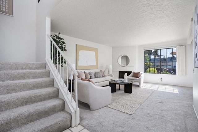Move right into this desirable 3-bedroom, 3-bath townhome in the sought-after Coral Cove community of Carmel Valley. The home features a light and bright open floor plan with a great-room feel that flows out to a private, elevated sunny south-facing patio with views across the valley—perfect for relaxing or Al fresco dining. Freshly updated with brand-new carpet and a fully painted interior, this move-in ready home also includes a large attached 2-car garage and convenient guest parking. Ideally located just a 4 min walk to Pavillions the largest supermarket in the area. Coral Cove offers resort-style amenities including pool, spa, pickle ball and tennis courts, BBQ area. The well managed HOA covers water, landscaping, and pest control. No Mello-Roos. Minutes to shopping, easy freeway access, top-rated Del Mar Union schools, and only about 2 miles to Torrey Pines State Beach.