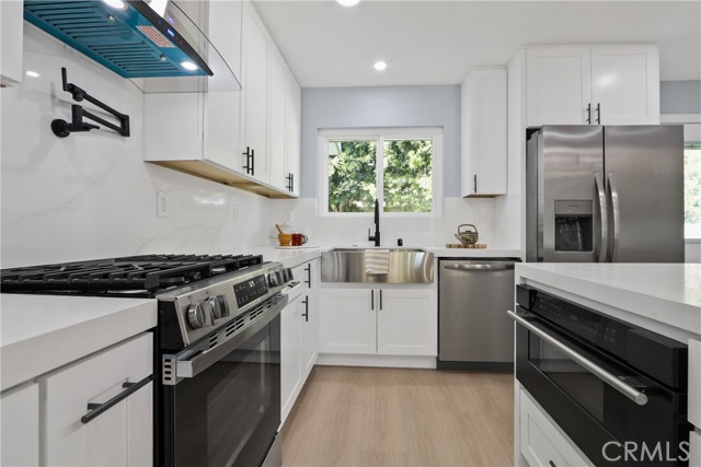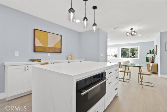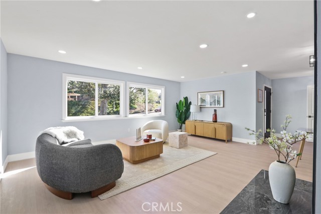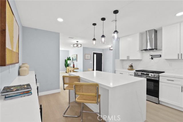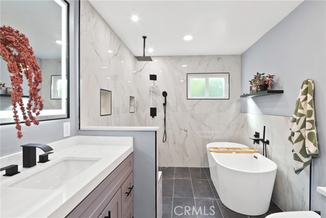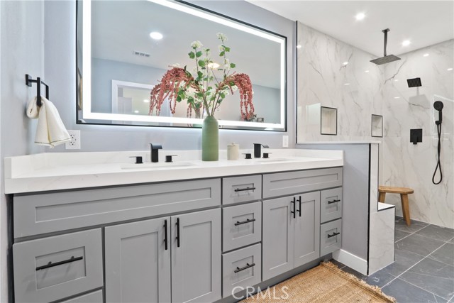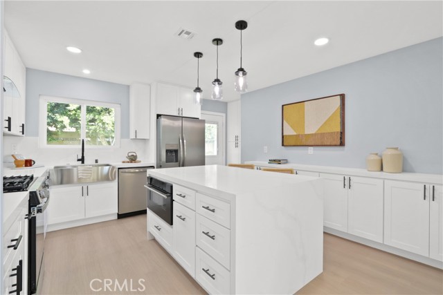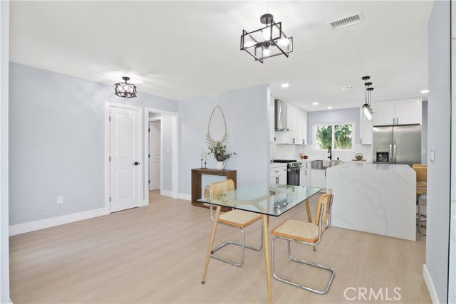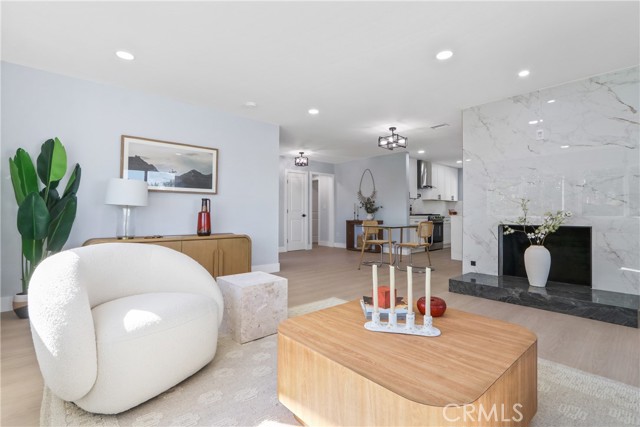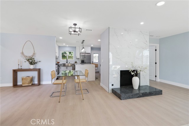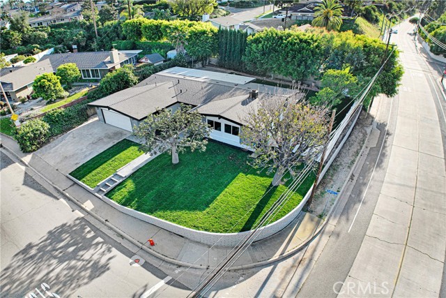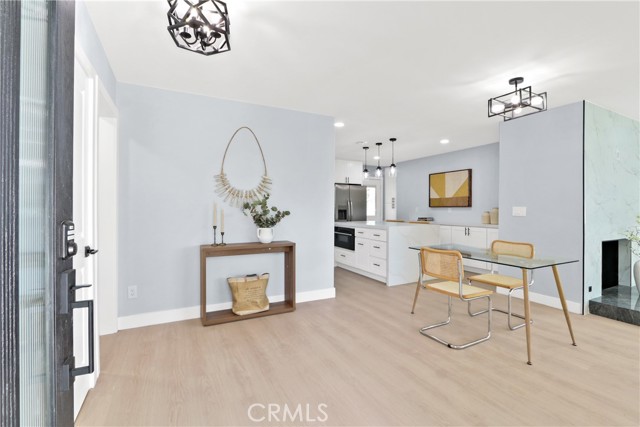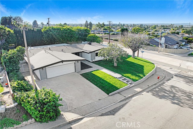 Welcome to your little slice of paradise! This absolutely stunning remodel blends modern comfort with tasteful nods to mid-century modern architecture. Perfectly positioned on a large, slightly elevated corner lot, this beautifully upgraded home offers both style and space in an inviting setting. Step through the oversized front door and immediately feel the sense of calm created by the open, airy, and light-filled floor plan. Abundant natural light pours through the home, highlighting the warm and inviting luxury vinyl plank flooring that seamlessly connects each living space. The spacious kitchen flows effortlessly into the dining and living areas, making it perfect for entertaining or everyday living. Thoughtfully redesigned, the kitchen showcases a striking quartz waterfall island, a large stainless steel farmhouse sink, shaker-style cabinetry, quartz countertops with matching backsplash, a convenient drawer microwave, and a clever corner lazy Susan for added storage. Both the kitchen and bathrooms have been completely remodeled with high-end finishes. Bathroom upgrades include Kohler fixtures, quartz countertops, illuminated mirrors, a luxurious walk-in shower with dual shower heads, and a large soaking tub designed for relaxation. Major system upgrades provide peace of mind, including a brand-new roof, new central heating and air conditioning, and new windows and doors throughout. The garage is also equipped with a 220V EV charger, adding modern convenience for electric vehicle owners. Outside, the expansive lot offers endless possibilities. Whether you envision a lush garden retreat, outdoor entertaining space, pool, or additional enhancements, the generous property provides the perfect canvas to create your own private oasis. This exceptional home combines thoughtful design, modern upgrades, and incredible potential—all in one remarkable property.
