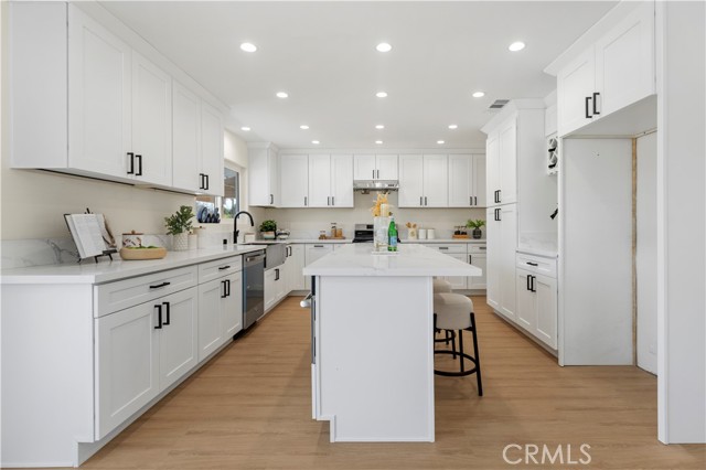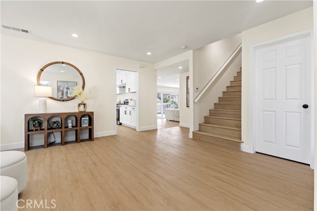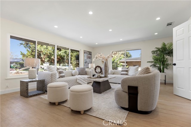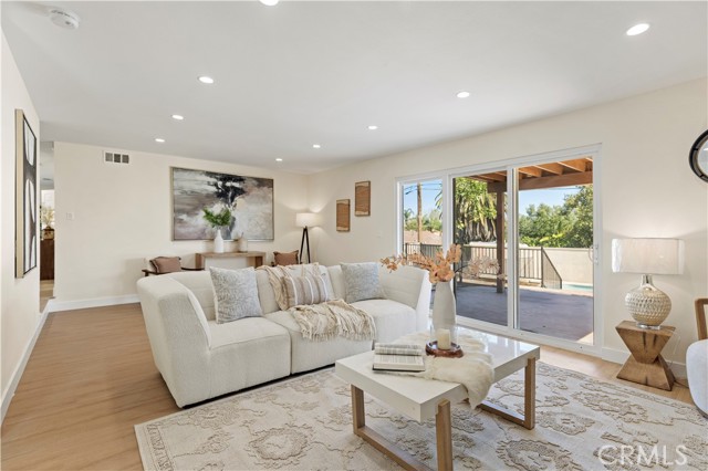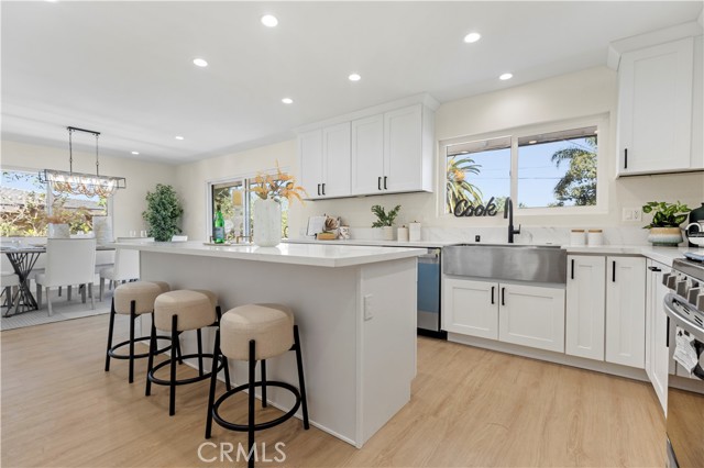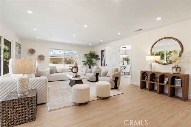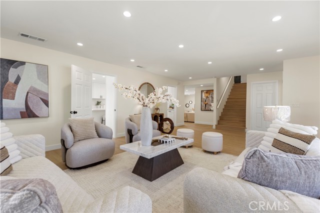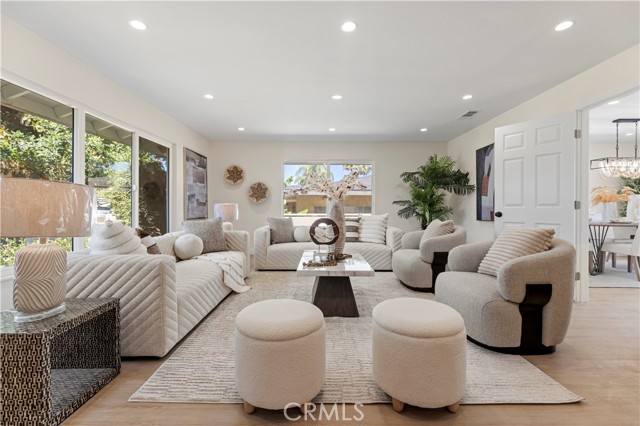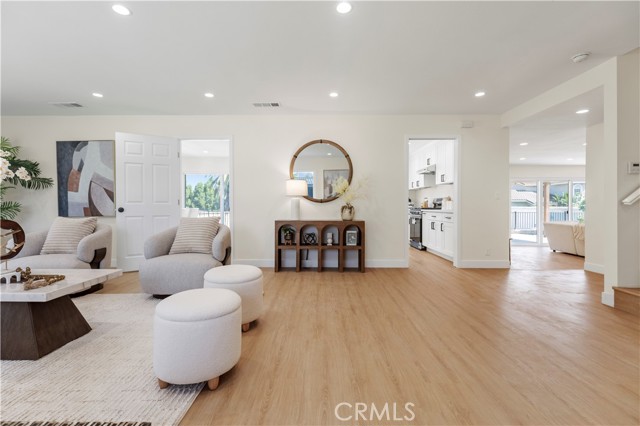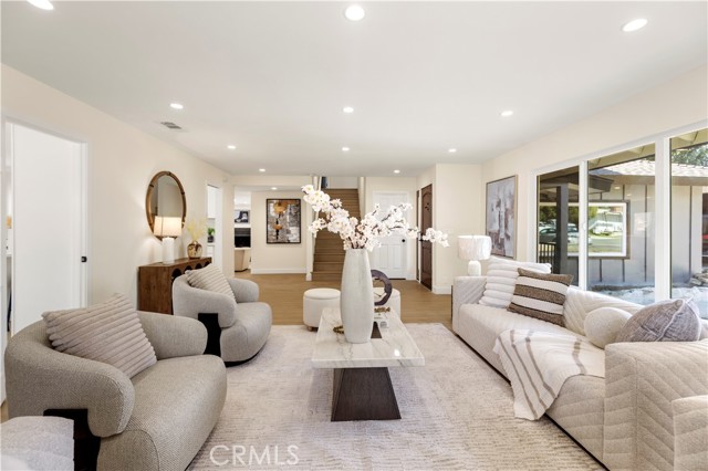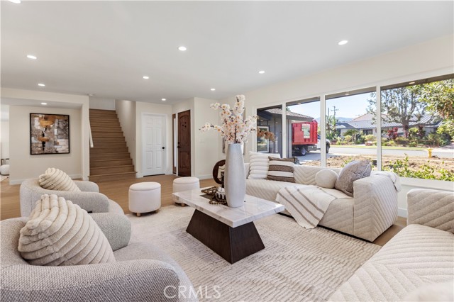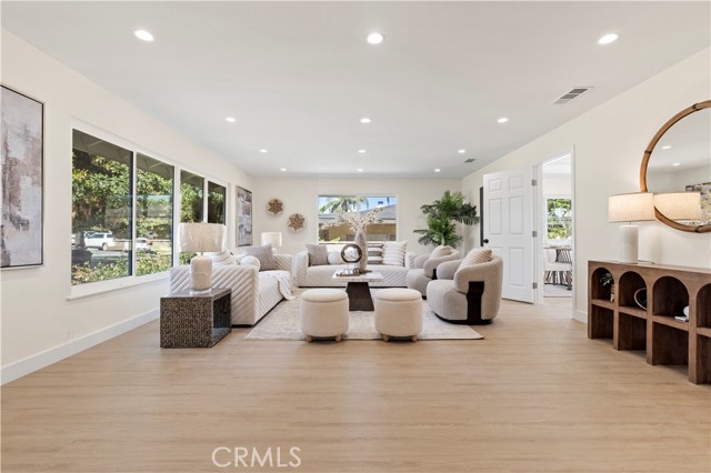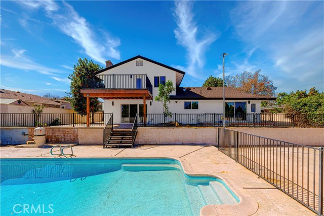 Welcome to 645 Lancer Lane, a beautifully reimagined residence located in one of Corona’s most desirable neighborhoods known for its custom homes, spacious lots, and quiet residential setting. Set on an expansive 10,454 sq ft lot, this fully remodeled home offers approximately 2,377 sq ft of thoughtfully designed living space featuring 4 bedrooms and 5 bathrooms, including a highly desirable main-level bedroom and bath—ideal for guests, multigenerational living, or a private home office. From the moment you enter, the home showcases a bright open layout enhanced by wide plank flooring, recessed lighting, and contemporary designer finishes. The spacious living room and dining area flow seamlessly into the beautifully updated chef's kitchen, featuring abundant cabinetry, generous counter space, a center island with wine cabinet, embedded microwave and breakfast seating. A large family room with statement fireplace provides an inviting space for gathering and entertaining, with direct access to the backyard for effortless indoor-outdoor living. Upstairs offers three well-appointed bedrooms along with three bathrooms, providing exceptional flexibility and privacy. A standout feature of the home is the private outdoor deck, perfect for enjoying sunset views, morning coffee, or relaxing evenings overlooking the neighborhood. The backyard is designed for Southern California lifestyle living, complete with a private pool, expansive patio areas, and generous space for entertaining or creating your own outdoor retreat. Additional highlights include: • Three-car garage (approx. 775 sq ft) • Large driveway and potential RV access from rear alley • Spacious and functional floor plan • Modern interior renovation throughout • Walking distance to local schools and parks Combining modern upgrades, generous living space, and an oversized lot, this beautifully updated property offers a rare opportunity in the sought-after Lancer Lane community. Buyer to verify all information including square footage and property details.