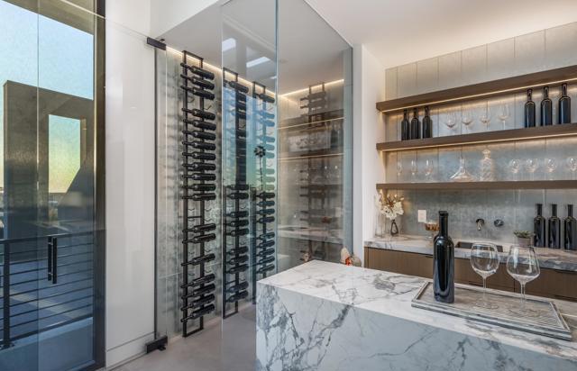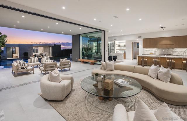 Welcome to 521 - 523 S Rios, stunning newly built 2023 ocean-view home with significant owner upgrades in 2024, this home is just steps from Cedros Design District in the heart of coastal Solana Beach; offering amazing world class restaurants and nightlife just 3 minutes away by foot. This home is a short walk to the Del Mar Fairgrounds & Racetrack and the stunning beaches and dog beaches of Del Mar & Solana Beach. Designed by EOS Architecture and developed by RMCI Group this contemporary compound is a total of 6,731 square feet with a luxurious 7 bedroom/10 bath main house (6,206 sq. Ft., including a detached guesthouse/ADU with 1 bedroom/1 bathroom (525 sq. ft.). This home features sophisticated architectural details, including a teak pivot door, soaring 11-foot ceiling enhanced by Kuzco and Fifth Avenue light fixtures, floating glass stairs, stone columns and walls, French oak-gray washed wood floors and a Lutron lighting system designed to create the perfect ambiance. Awake sliding glass doors seamlessly connect the indoor living spaces to the outdoor oasis complete with a 40-foot pool, 10x10 spa, an outdoor kitchen, dining and bar seating, a fire pit, acid-etched concrete patios and multiple lounge areas - creating an atmosphere reminiscent of a high-end luxury resort. The gourmet kitchen is equipped with top-of-the-line appliances including a Sub-Zero refrigerator, second Sub Zero refrigerator for the butlers pantry and wine fridge, Gaggenau 6-burner induction gas cooktop, Wolf microwave drawer, two Miele dishwashers and a spacious Butler’s pantry. The Primary Suite welcomes you with sweeping ocean views from its private deck, a gas fireplace with porcelain slab surround, dual custom walk-in closets, a Sub-Zero refrigerator with custom cabinetry, a coffee bar and electric sun shades. The luxurious master bath features porcelain tile floors, a spacious shower with rain shower heads and a soaking tub. The guesthouse/ADU boasts a flexible layout complete with a wet bar and direct access to the outdoor living space and fire pit, maintaining the same design aesthetic and luxurious feel found throughout the rest of the home. Newly built in 2023 the home has also been completely customized in 2024 with a number of state of the art features including a Savant system that integrates a full security protocol with 360 degree cameras & 24/7 surveillance, automatic & remote access blinds throughout the entire home and mobile door locking. Brand new upgrades include 25 foot tall Indian Laurel hedges around the north-western perimeter, a wellness circuit with Clearlight 3-person cedar-lined dry sauna, Breathe Degrees Cold Plunge with 36 Degree chiller and Redwood enclosed surf shower. The Seller installed new Toto toilets with Washlets, new TVs throughout the home, mobile access to HVAC through the Savant system and a new Kitchen in the first floor bedroom perfect and convenient for family or as caretaker quarters. Additionally, recent installations include a whole house PurEarthH2O water softening and reverse osmosis system and 3 location drinking water faucets. EOS Designed, RMCI built and further customized throughout all of last year; this home is packed with value and as impressive as you will ever see alongside the ocean here in Solana Beach!