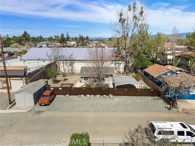 Hidden in the heart of downtown Lakeport, this charming and private 1bd 1bth home sits on a rare double-wide lot with room for expansion. Tucked behind a front gate, the property offers a private and peaceful setting while still being close to shopping, restaurants, and Clear Lake. The home features an open and spacious layout with a large front living area and kitchenette. French doors lead to a covered front porch. A full bathroom with tub and shower sits off the main living area. The bedroom includes a large walk-in closet with washer and dryer and an additional side door leading directly into the yard. Recent improvements include newer windows from a 2010 remodel, new window coverings installed last year, new toilet and professionally installed underground sewer line to the city street in 2024, new mini split installed in 2025, and a brand new roof installed March 2026 with 30-year composition shingles. The oversized lot provides excellent flexibility with a 30’ x 40’ cement slab with a 20’ x 20’ metal carport, perfect for covered parking, a boat, or extra patio space. Double wide gates, rebuilt last year, provide easy access. The property also includes a detached single car garage with an automatic door and rear yard access, tons of off street parking, and fully fenced privacy! The yard features a garden shed, raised garden bed, and mature cherry, plum, and fig trees. This home is a great opportunity for first-time home buyers, fishermen and lake vacationers, or investors looking to add a rental property to their portfolio in desirable downtown Lakeport.