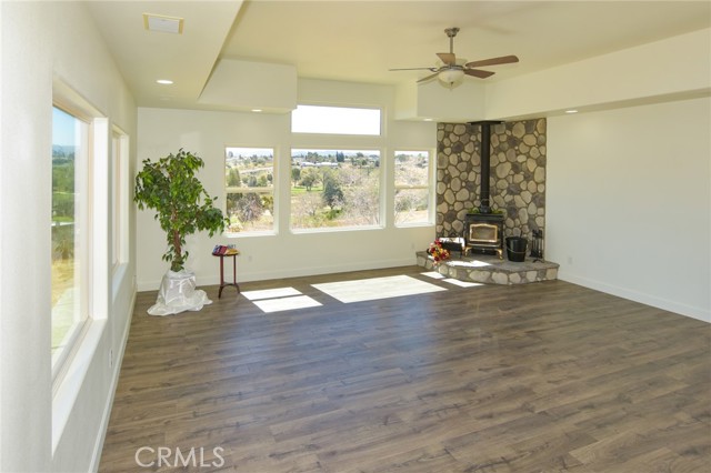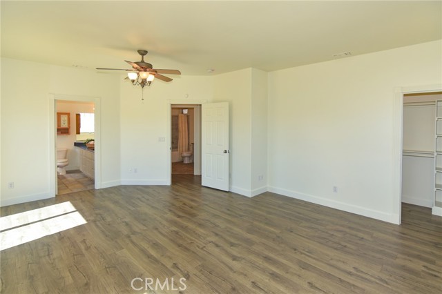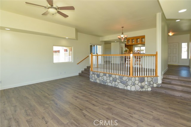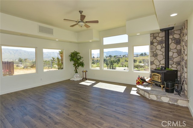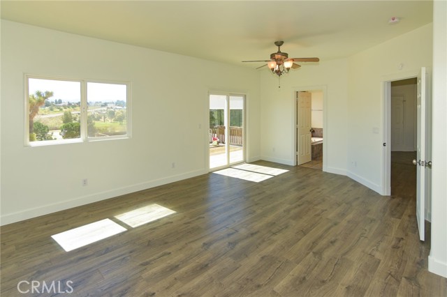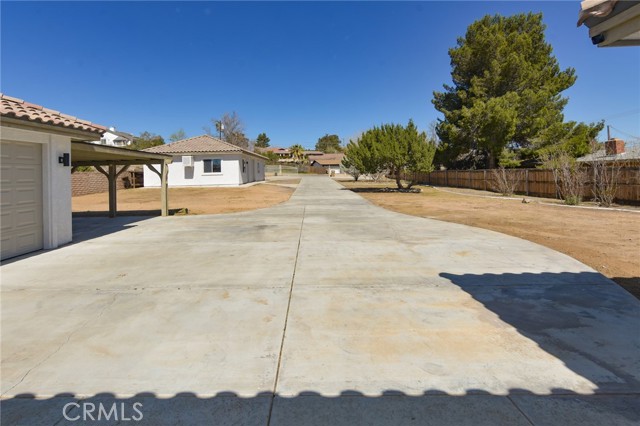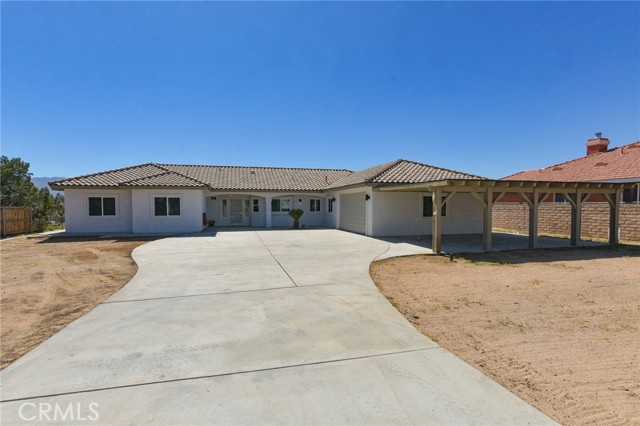 3BR/2BA home with open bonus room in Hesperia. Canyon and golf course views. 2,306 sq ft built 2002 on 43,910 sq ft lot. 744 sq ft shop with bath. This 3 bedroom, 2 bathroom home in Hesperia offers 2,306 square feet of living space on a 43,910 square foot lot, just over one acre, with canyon views stretching toward the Hesperia Golf Course. Built in 2002, the home includes an open bonus room currently used as an office that could function as a fourth bedroom, workspace, or additional living area if enclosed. The fully fenced and gated property includes a concrete drive from the entrance to the home and a separate drive leading to the detached shop. Inside, the living room features vaulted ceilings and a fireplace installed during the original 2002 construction. The remaining areas of the home feature approximately eight foot ceilings, with the primary bedroom also offering elevated ceiling height. Laminate and tile flooring run throughout the home for durability and easy maintenance. The kitchen includes hard surface countertops along with a new stove, new dishwasher, and microwave. The dining area opens to a covered 384 square foot patio positioned to capture sunrise and sunset views across the canyon landscape. The primary bedroom suite includes a spa tub, separate shower, and sink area. Central heating and air conditioning include an oversized AC unit designed to maintain consistent comfort. Laundry is located in the attached garage. In addition to the approximately 442 square foot attached two car garage, the property includes a permitted 744 square foot detached shop built in 2002 with office space and a three quarter bathroom, creating a separate workspace suitable for projects, equipment storage, or business use. The lot offers extensive parking including RV parking and additional space for vehicles, trailers, or equipment. Utilities include septic service and water provided by the City of Hesperia. The exterior is stucco and the property is zoned R1 within the Hesperia Unified School District.