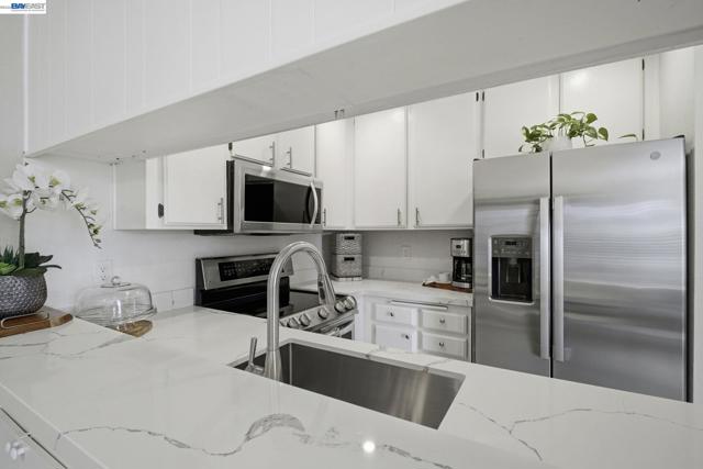 Discover the perfect blend of serenity and style in this beautifully updated 2-bedroom, 1-bath condo in Union City’s Mission Village. Perched on the second floor, this unit is ideally situated away from the noise of roads and parking lots, offering a quiet sanctuary with peaceful views of the surrounding hills. Recently transformed kitchen with stunning quartz countertops and a full suite of stainless-steel appliances. In-unit laundry closet. The HOA has recently updated the balconies, stairs, and patios. Your monthly dues cover both water and trash costs and provide access to the community pool and lush greenbelts. Located minutes from BART, I-880, and the Dumbarton Bridge, this home is a commuter’s dream that doesn’t sacrifice tranquility.
