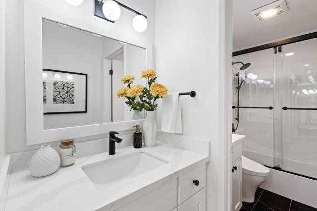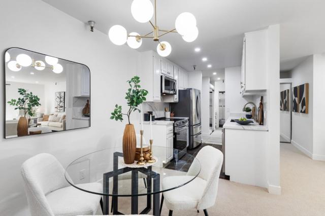 Experience modern living and stylish comfort of this newly remodeled top floor condo in a secured building with elevator. With friendly neighbors,highly rated Los Altos schools and a vibrant community, this home is perfect for modern, connected living in Mountain View. Abundant natural light highlights the sleek interiors. The cozy living area features a fireplace, while the kitchen offers contemporary convenience. Enjoy the in-unit washer and dryer, plus ample storage, including a walk-in closet in the primary bedroom, coat and linen closets and additional spaces in the common storage area. Updates include recessed lights, new carpet, baseboards and interior painting, and the luxurious bathroom with Toto bidet. Stay connected with Ethernet wiring and fiber internet for high-speed connectivity. The AV hidden cable design ensures a clean TV setup. Community amenities include a pool, clubhouse, and BBQ area. A park across the street offers a pleasant outdoor retreat. Two assigned parking spaces underground and ample guest parking add convenience. This location is ideal for those who value accessibility: a short walk to grocery stores, restaurants, and banks, with public transportation options and office shuttle pickups nearby. Downtown Mountain View is just a quick drive away.