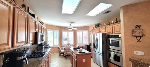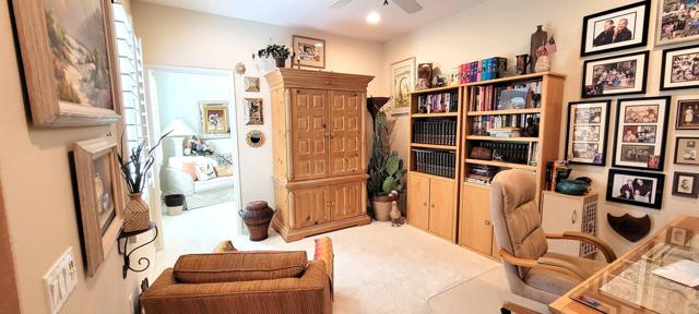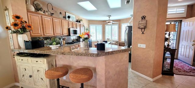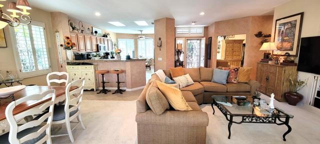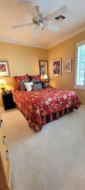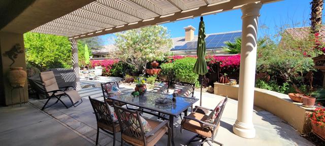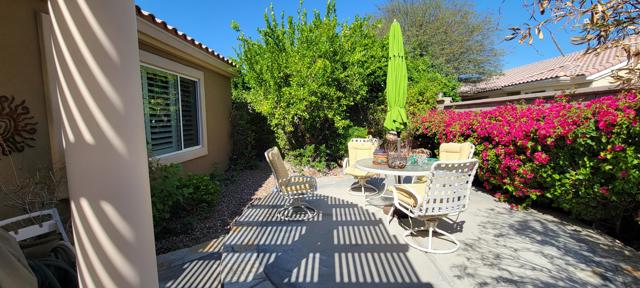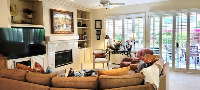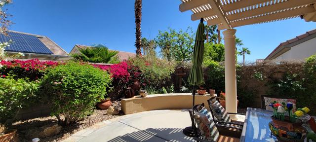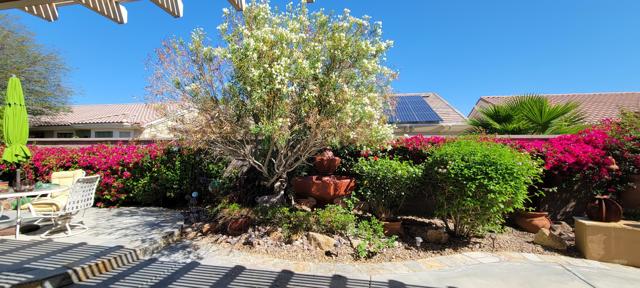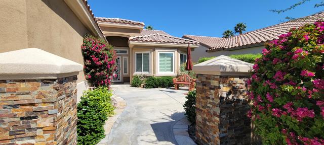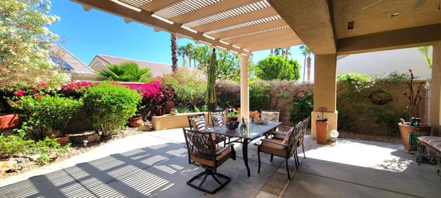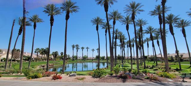 Welcome to resort style living in Sun City, Palm Desert. This 2 bedroom/2 bathroom + an additional room to be used as a bedroom/office/den/sewing or crafting area. Beautifully appointed throughout and lovingly cared for. You'll love the high ceilings, open floorplan and lushly landscaped backyard with several seating areas for your enjoyment, 2 car garage + golf cart garage, plantation shutters throughout and a fireplace for cozy evenings. When you feel like getting out and about, Sun City offers something for everyone. Residents have thirty-six holes on two magnificently maintained regulation championship golf courses located on property. These spectacular courses, designed by former PGA star Billy Casper, provide resort-style golf play and host several tournaments each year. Additionally, there are 80+ clubs and social groups and a large selection of recreational, athletic, educational, entertainment and social activities for you to enjoy and get to know your neighbors along with 3 clubhouses, 3 restaurants and even their own postal center! There are also educational opportunities and entertainment from plays and musicals to star-studded shows, concerts and guest speakers. Along with golf, there are 2 fitness facilities and 5 swimming pools, 20 paddle courts, 8 bocce courts, Zumba, Pilates, softball field, stocked fishing lake (catch and release), driving range, chipping and putting practice areas, bike and jogging paths and for your furry family members - 2 fenced dog parks. Sun City is recognized as the best active adult community in the valley. Come by, see this gorgeous home and check out the beauty that is Sun City, Palm Desert.