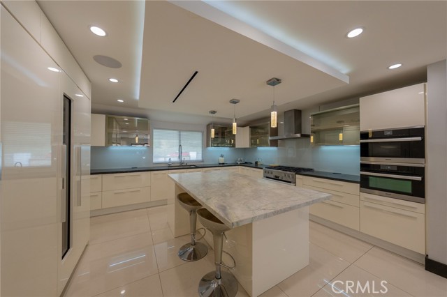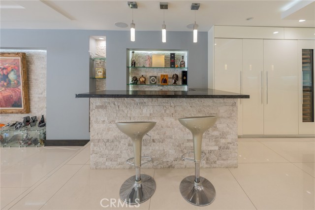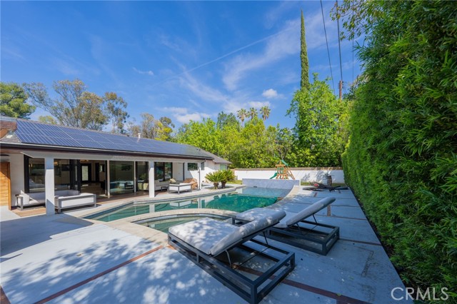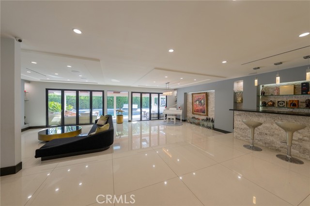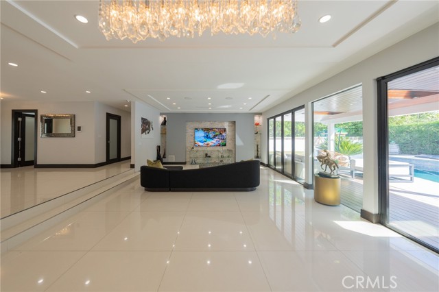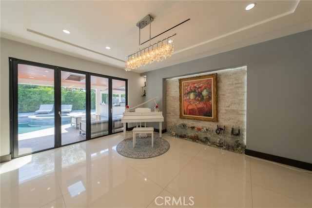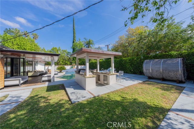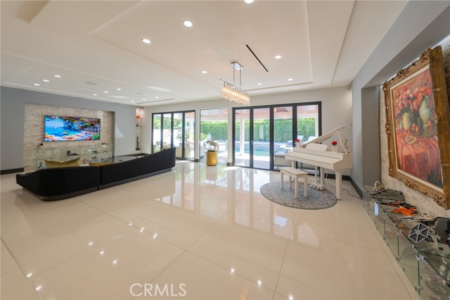 Experience Elegance This meticulously designed single-story pool home defines luxury with natural stone finishes and designer lighting throughout. The open-concept living and dining areas offer tranquil backyard views, while the chef’s kitchen features a large center island, Miele appliances, and a built-in wine fridge. The primary suite is a private retreat with dual closets and a spa-like en-suite featuring a towel warmer and vanity. Outside, the resort-style backyard is built for entertaining, boasting a pool, spa, sauna, and a covered BBQ bar alongside lush green space. Practical luxury completes the home with a gated entry, security system, and a garage outfitted with custom cabinetry leading to an oversized laundry room. Turn-key!