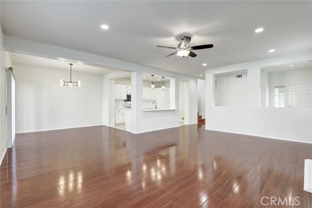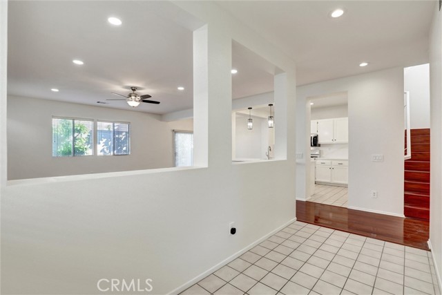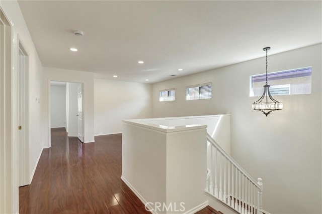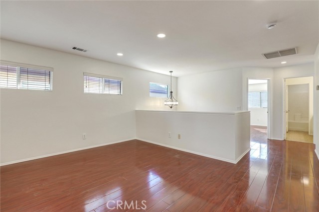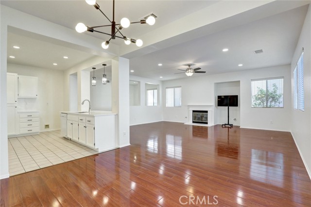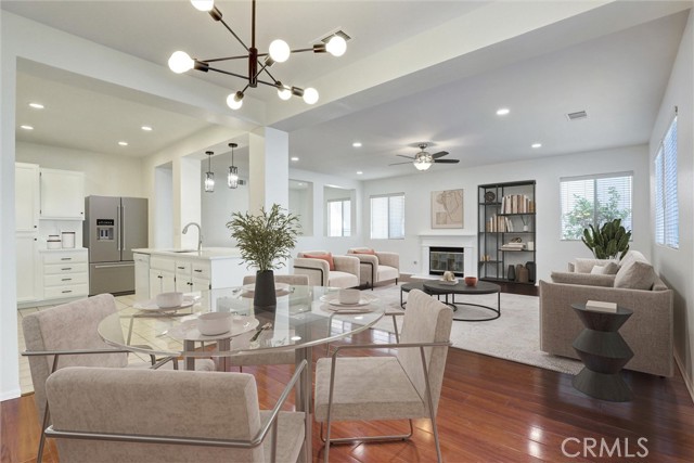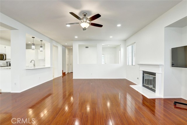 Beautifully maintained single-family residence nestled within the prestigious gated enclave of Harvard Square, right in the vibrant center of Irvine with a spacious, circular central park anchors the neighborhood, featuring an inviting pool, lush green spaces, and a range of recreational amenities. This residence features four generously sized bedrooms, a large upstairs loft that offers a versatile retreat, perfect for a home office, media room, or additional living area, and a conveniently located laundry room on the upper level. Step into this stunning open-concept living space that seamlessly blends modern elegance with everyday comfort. The kitchen showcases crisp white cabinetry, a spacious island with bar seating, built-in sink, and stylish pendant lighting—perfect for entertaining or casual meals. Flowing effortlessly into the living room, you'll find rich wood floors, recessed lighting, a cozy fireplace with a classic white mantel, and it could be accented by built-in shelving or mount flat-screen TV for relaxed evenings at home. This bright and inviting layout highlighting the clean lines and contemporary finishes throughout is ideal for both quiet moments and lively gatherings. Retreat to the spacious master bedroom, designed with comfort and versatility in mind. Featuring rich polished wood flooring and crisp white walls, the room exudes a clean and modern aesthetic. Dual windows with blinds invite natural light while offering privacy. A ceiling fan with integrated lighting ensures year-round comfort, while the ceiling vent enhances airflow. This master bedroom offers the perfect canvas for your personal style. The backyard features a curved concrete patio bordered with brick accents, ideal lounging. The lawn, including trees and shrubs along the perimeter create private atmosphere, all enclosed by a brick-base fencing. A sliding glass door offers seamless indoor-outdoor flow, while the air conditioning unit is discreetly positioned. This backyard is perfect for entertaining and relaxing.