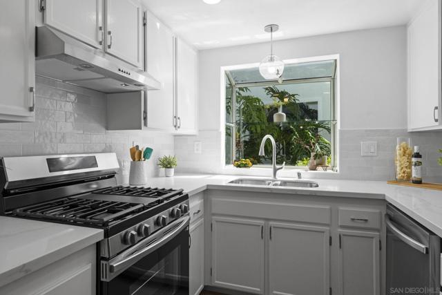 Welcome to Talmadge living at an affordable price point! This beautifully renovated first-floor end unit offers comfort, convenience, and style—perfect for a first-time homebuyer, or investor. The thoughtfully updated kitchen features all-new stainless steel appliances, quartz countertops, a stylish backsplash, updated hardware, and modern lighting. Both bathrooms have been upgraded with quartz counters, new sinks and fixtures, vanity improvements, updated hardware, and lighting. Brand-new LVP flooring and fresh paint throughout create a bright, move-in-ready space. Enjoy the privacy of an end unit along with a private patio—perfect for relaxing or entertaining. A rare detached tandem two-car garage provides ample storage and the peace of mind of always having parking. Centrally located just minutes from freeways, shopping, restaurants, and all that San Diego has to offer.