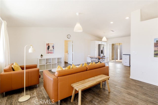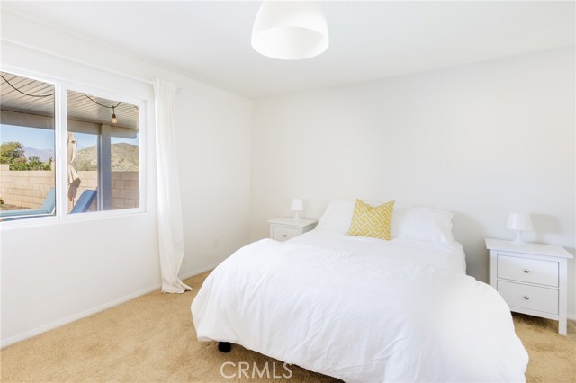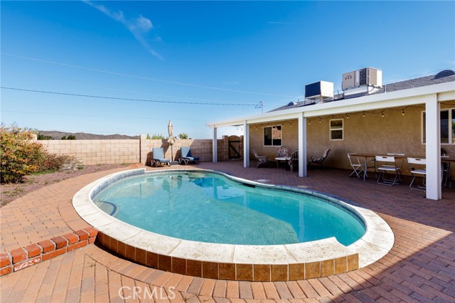 Located in the serene desert city of Yucca Valley, adjacent to Joshua Tree, secluded from the city but close to businesses, local stores & restaurants, breathtaking views in every direction from outside/inside the house, starry nights and city lights, plenty of driveway and garage parking, open living room, dining area and kitchen, all with high ceilings, laundry room, office (or 4th bedroom) and an attached garage that is set up as a yoga/exercise studio, main bedroom with a view and an attached bath, two hallway bedrooms with large closets and views, hallway bath, huge linen closet, central heat and air and a swamp cooler, pool with seating and dining, a second rear RV garage also with a swamp cooler, desert backyard, was a successful airbnb for two years and a rental for two years, option to purchase furnishings, secluded, huge lot, nearby hiking and off roading trails, come see a great home in a great location.