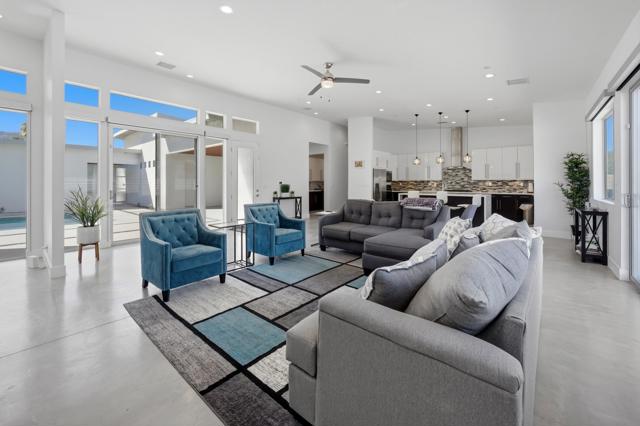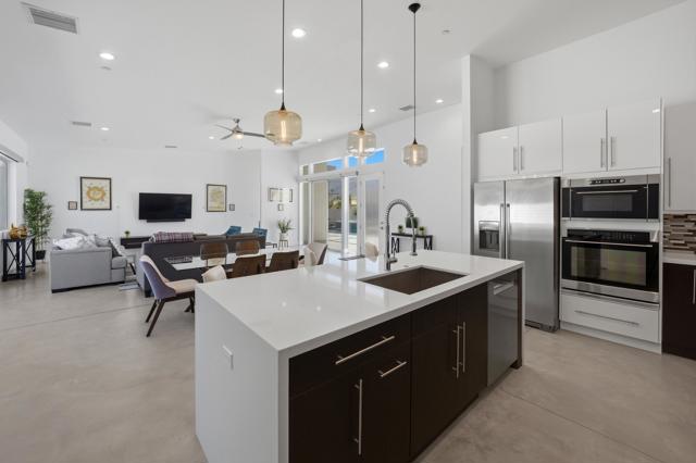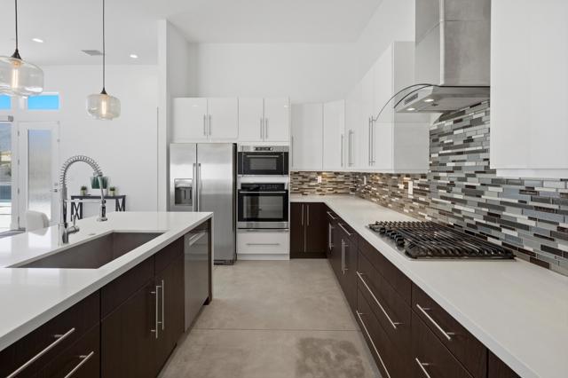 Welcome to your go-to paradise! This nearly new home, crafted in 2016 by one of Palm Springs' beloved custom builders, is where the ordinary takes a permanent vacation. It features four bedrooms, including a fabulous primary suite with a spa-like bath and a walk-in closet that's so spacious even your entire shoe collection will give you a thumbs up.The main residence has two additional guest suites with a convenient jack-and-jill bath--perfect for avoiding those awkward morning encounters! And don't forget the attached guest house, complete with its own kitchen, bedroom, and full bath--ideal for when you want to give your visitors the royal treatment while still maintaining your personal space.With sleek modern finishes and ceilings that soar higher than your weekend plans, the bright public space will make you feel like you're living in a magazine. The chef's kitchen features a large island and waterfall quartz counters, perfect for all your culinary masterpieces--or just a quick bowl of cereal.Open up those giant glass doors and let the indoor and outdoor spaces join forces. You'll find a fabulous pool with a swim lane and a spa that guarantee your guests will soak up the Palm Springs sunshine along with the stunning mountain views. To top it all off, a three-car attached garage and drought-tolerant landscaping make maintenance a breeze.Come chase away the ordinary and make this modern oasis your own!