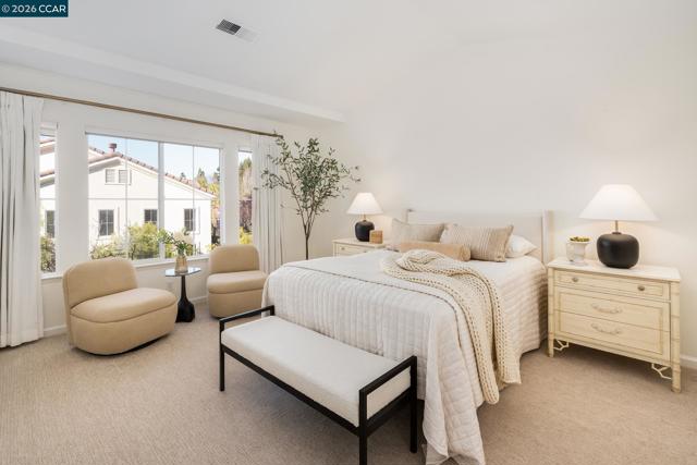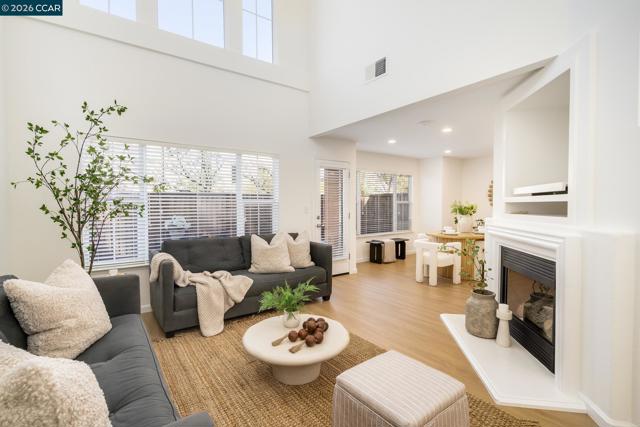 Located in Cedar Bridge within the prestigious Gale Ranch community, this desirable end-unit townhouse features a light-filled living room with soaring ceilings and large windows that bring in abundant natural light. The kitchen offers a walk-in pantry, generous cabinet storage, gas range/oven, and a convenient breakfast bar. The living room opens to a private, low-maintenance backyard, creating easy indoor-outdoor living for relaxing or entertaining.The dining area sits adjacent to the living room, ideal for everyday meals and gatherings. Upstairs, the spacious primary suite offers ample closet space and a bright, sun-filled setting. Two additional bedrooms share a hall bath with dual vanities. Modern updated light fixtures, Fresh interior paint, stylish new flooring throughout the home. Enjoy community amenities including a pool just around the corner and scenic surroundings. Conveniently located near top-rated San Ramon Valley Unified schools, San Ramon City Center, parks, trails, and the shopping and dining of downtown San Ramon and Blackhawk Plaza.