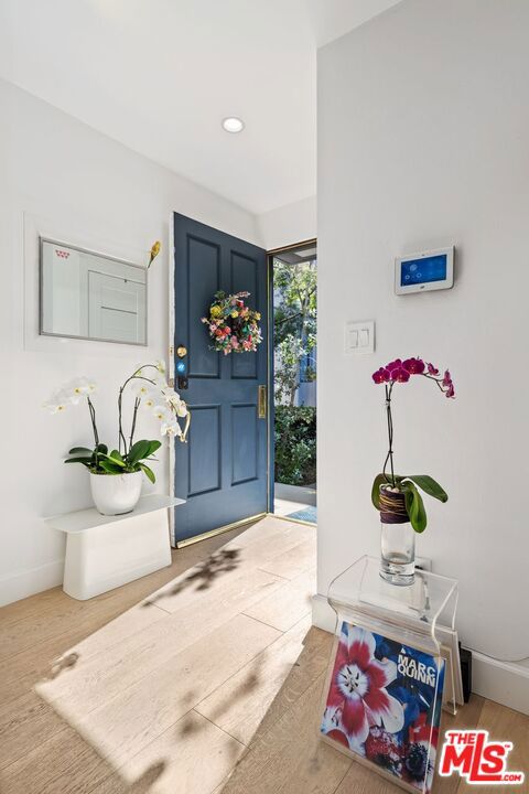 Luxury Marina Del Rey Townhome Blocks to the Waterfront! Experience resort-style living in this exceptionally private and fully renovated 2-bedroom, 2.5-bath townhome in a prime Marina del Rey location. Thoughtfully upgraded with high-quality materials throughout, this spacious residence offers the comfort and sophistication today's discerning buyers expect. The expansive living room features soaring ceilings, a custom fireplace, and newer sliding glass doors that open to a large, private patio shaded by mature trees perfect for relaxing or entertaining. Ideally positioned within the community, the home enjoys peaceful west-facing light and exceptional privacy. An oversized dining area is ideal for hosting memorable dinner parties, while the open-concept chef's kitchen delivers true luxury-home appeal with Caesarstone countertops, custom cabinetry, a custom stone breakfast island, a 6-burner stainless steel gas range, smart refrigerator, and stainless dishwasher. Recent upgrades include hardwood flooring throughout, newer doors and hardware, newer windows, a newer HVAC system with Nest thermostat, LED lighting with Lutron dimmers, automatic electronic shades, and custom wood shutters. The home also features an updated electrical panel and newer LG side-by-side washer and dryer. The upper level offers two spacious bedroom suites with custom closets and en-suite baths. The primary suite showcases vaulted ceilings and a private balcony with serene views. Additional highlights include a powder room on the main level, direct-access private two-car garage with Tesla charger, and a large storage room. Residents enjoy resort-style amenities including a pool and spa surrounded by lush landscaping in a tranquil setting. Ideally located just moments from the Marina waterfront, shopping, restaurants, yacht clubs, and theaters.