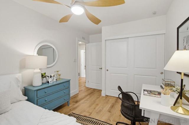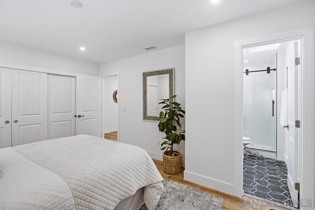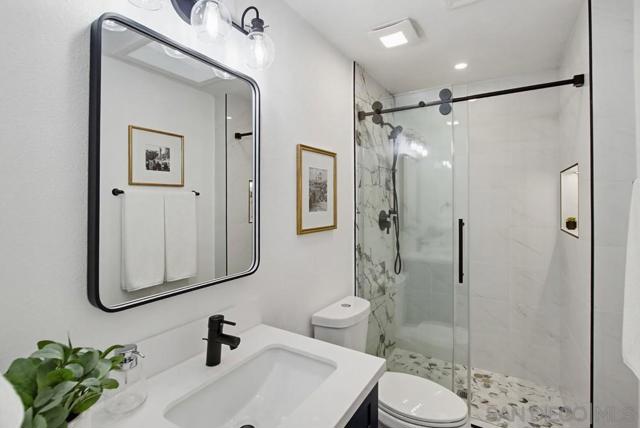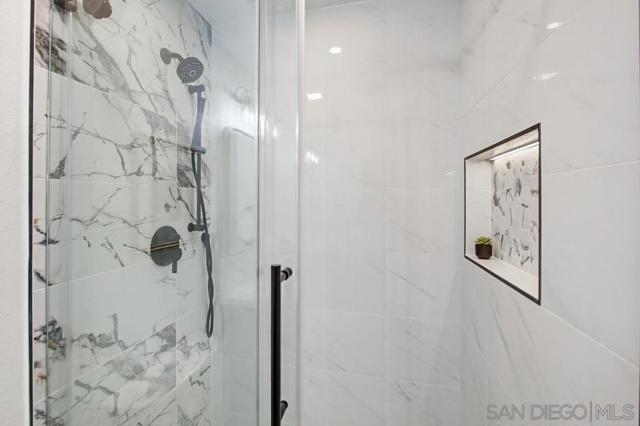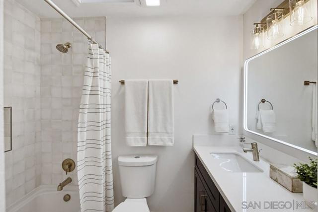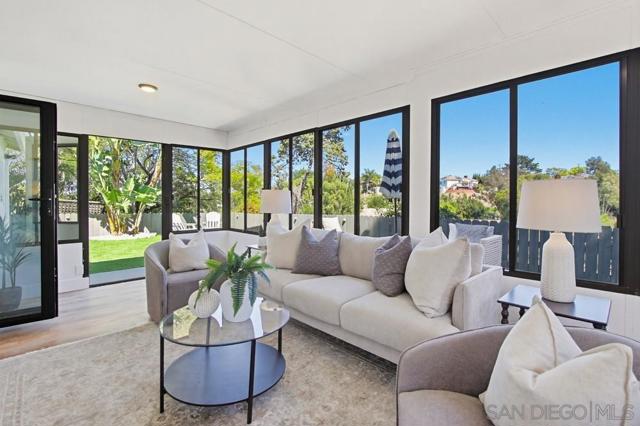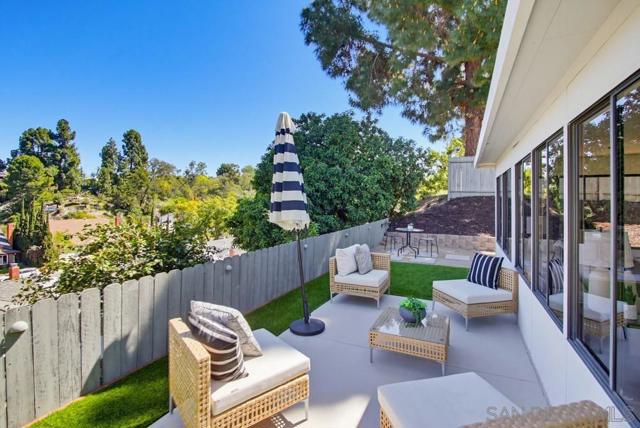 Vaulted ceilings and dramatic bi-folding doors set the tone for this beautifully upgraded single-level home located north of Adams Ave near the El Cerrito/Talmadge border. The main living space opens wide to the backyard through expansive folding doors, creating seamless indoor/outdoor living and framing peaceful canyon views. The open-concept layout centers around a light-filled great room where the kitchen, dining, and living areas flow together, ideal for modern living and entertaining. The remodeled kitchen features quartz countertops, custom soft-close cabinetry, and abundant storage while overlooking the main gathering space. Interior upgrades include luxury vinyl plank flooring, recessed lighting, and designer finishes throughout. Both bathrooms have been fully renovated with custom tile work, modern vanities, and upgraded fixtures, including a primary suite shower with illuminated niche lighting. This home delivers immediate curb appeal and a private backyard with canyon views that feels tucked away yet connected to the home through the dramatic bi-fold doors. Additional features include a 2-car garage, ample off-street parking, and a 3-year home buyer warranty. Located minutes from SDSU, parks, restaurants, and major freeway access!