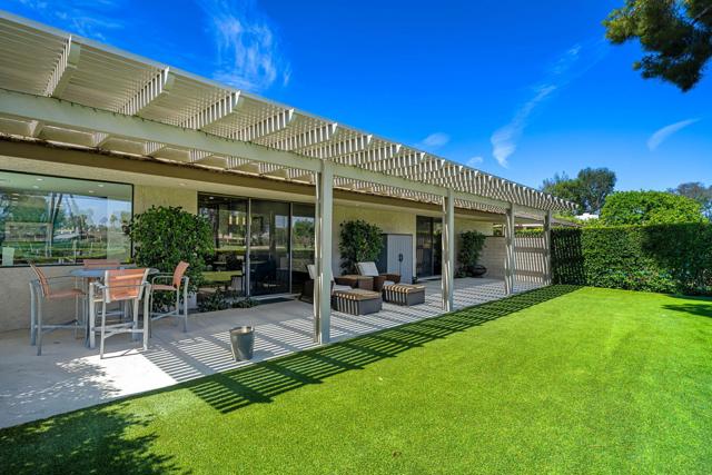 Welcome to 78 Columbia, a stunningly reimagined Pebble Beach floor plan nestled within the prestigious Springs Country Club, where luxury living meets resort-style amenities. This rare offering perfectly blends indoor elegance with exceptional outdoor living.Recent system upgrades (2025) provide peace of mind, comfort, and efficiency, including: HVAC Zone 1 new, two new furnaces, and two brand-new tankless water heaters.Enjoy effortless entertaining with expansive patio spaces, a private saltwater pool and spa, and breathtaking golf course views. The spacious lot offers a unique configuration with a private pool thoughtfully positioned to the side within a beautifully landscaped courtyard, creating a serene and secluded retreat.Inside, sophistication meets comfort. The living area features newly installed window treatments and a 60'' linear gas fireplace, and stunning vistas of the fairways. Two of the four bedrooms are currently utilized as private offices, offering flexible living options. From the sleek 12''x60'' porcelain tile flooring to the new recessed lighting every detail has been thoughtfully curated from floor to ceiling. The kitchen has been completely reimagined with a waterfall-edge breakfast bar, modern cabinetry, and newer appliances. The former dining room now serves as a flexible bonus space, perfect for a cozy den, reading nook, or lounge. Each of the four bathrooms has been fully remodeled, featuring floating vanities and sleek, linear finishes that elevate the home's contemporary design.Sustainability meets style with owned solar panels, enhancing energy efficiency without compromising comfort.Located just steps from the community's amenities which include pickleball and tennis courts, a fitness center, clubhouse, and cafe. 78 Columbia isn't just a home, it's a lifestyle.