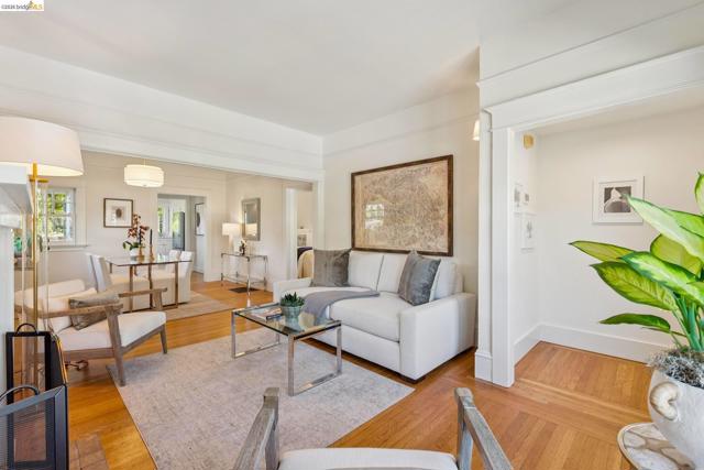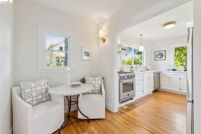 New Listing! Charming Berkeley Bungalow with dramatic architectural details that blend seamlessly with thoughtful modern updates. The living room is filled with sunlight and period details creating an inviting space to call home. The adjoining dining room is perfect for gatherings both intimate and celebratory. Just off the dining room, a cozy breakfast room provides the ideal spot for morning coffee or casual meals. The beautifully renovated kitchen combines style and function with sleek quartz countertops, classic subway tile, and a large picture window that frames tranquil views of the verdant backyard. Two comfortable bedrooms offer peaceful retreats and share a recently remodeled bathroom. The beautifully landscaped backyard feels like a private urban oasis. A majestic redwood tree anchors the space, while a spacious patio invites al fresco dining, entertaining, or simply relaxing. Just minutes to Berkeley’s beloved Gourmet Ghetto where you’ll enjoy celebrated dining, cafés, and neighborhood favorites. Open 2-4:30pm. BESO score 8.