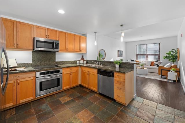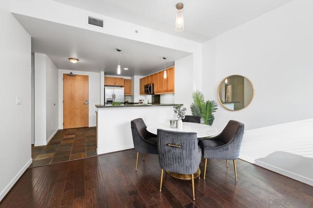 Don’t miss this opportunity to own a condo in the vibrant East Village, just two blocks from Petco Park! Located in the highly desirable Metrome building, this modern one-bedroom residence sits on the 6th floor and offers an open, spacious floor plan. The unit has been freshly painted and features a blend of hardwood and slate tile flooring, creating a clean, contemporary feel throughout. The large open kitchen is complete with stainless steel appliances and includes abundant counter space & cabinets. The condo also includes assigned underground parking and additional storage unit. Metrome is a secure, well-maintained community featuring controlled entry, a beautifully landscaped and serene courtyard with water features, a fully equipped fitness center, BBQ area, and an inviting resident lounge/entertainment space. Enjoy an unbeatable downtown lifestyle just minutes from the Gaslamp Quarter, known for its vibrant restaurants, nightlife, entertainment, and shopping. You’re also conveniently close to the waterfront, including Seaport Village, the scenic San Diego Harbor, and The Rady Shell for concerts! Coronado is just a short distance away – ferry or drive across to the island! This is an exceptional opportunity to own in one of downtown San Diego’s most convenient and desirable locations—perfect as a primary residence, second home, or investment property.
